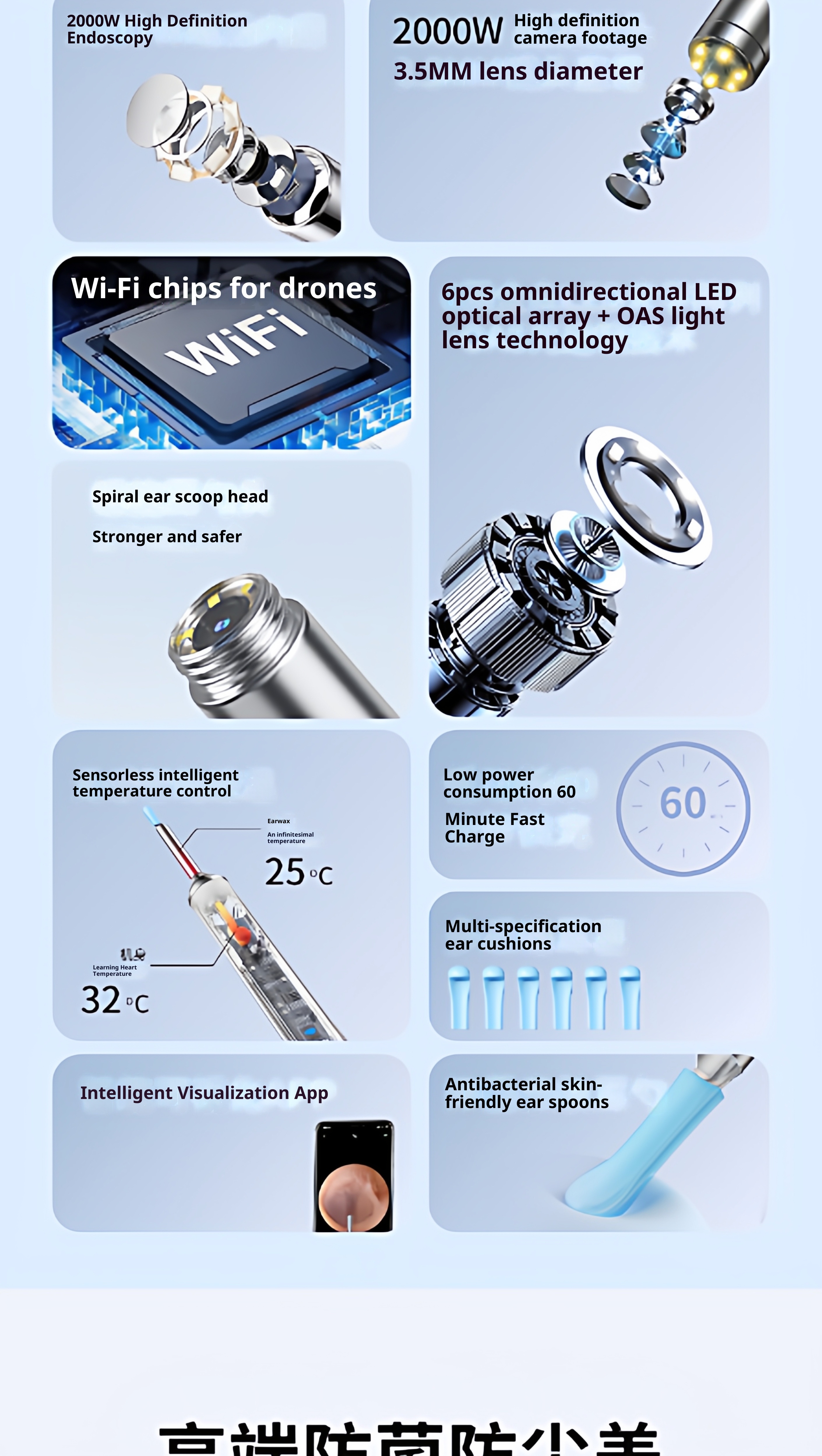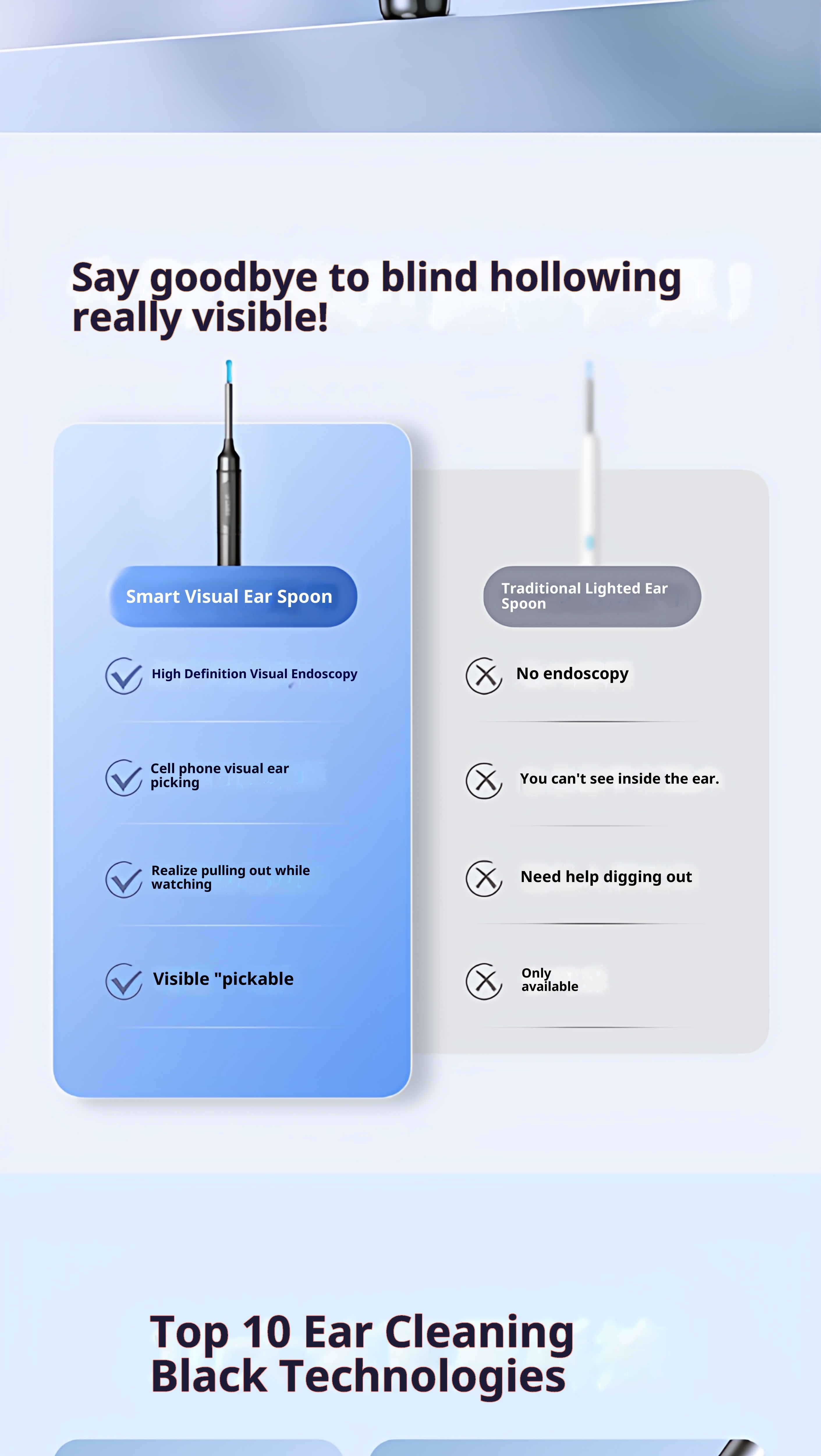 High definition visual ear digging tool, intelligent high-definition luminous ear digging spoon for children