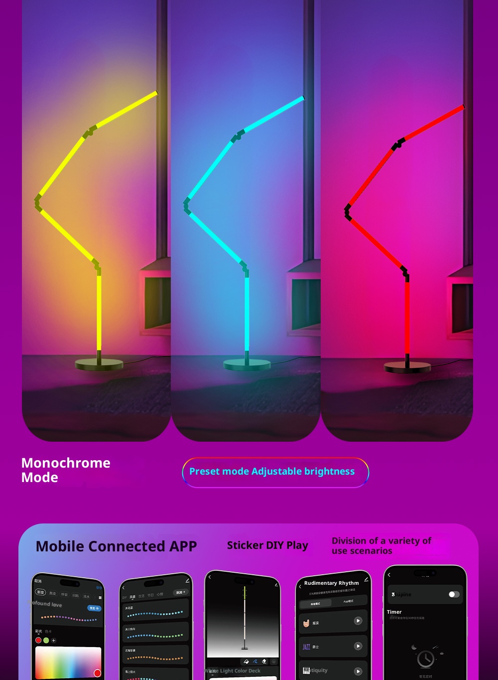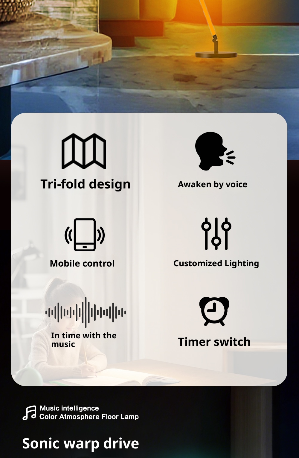 RGB pickup ambient light, live room standing floor lamp, music rhythm voice controlled rhythm light