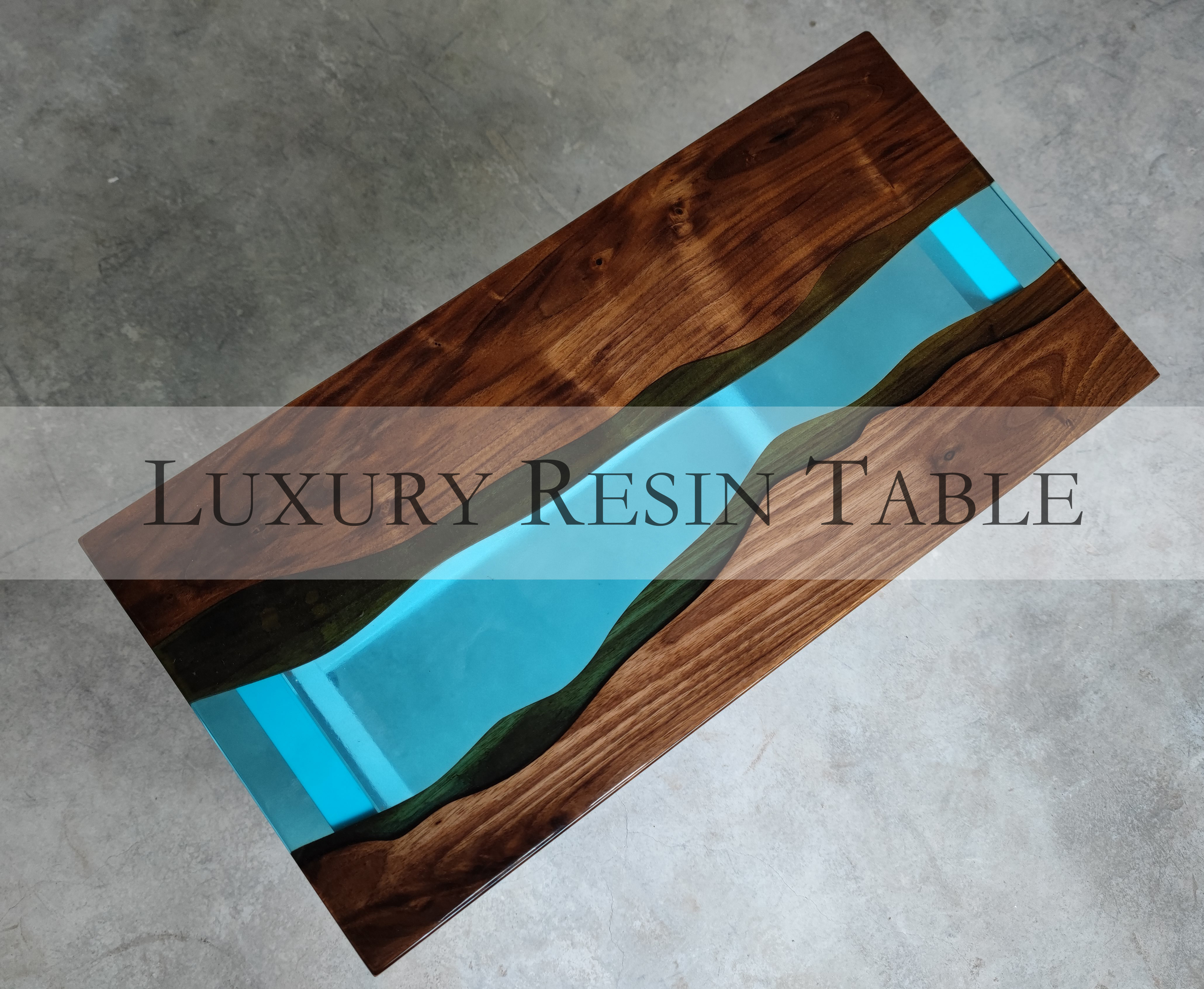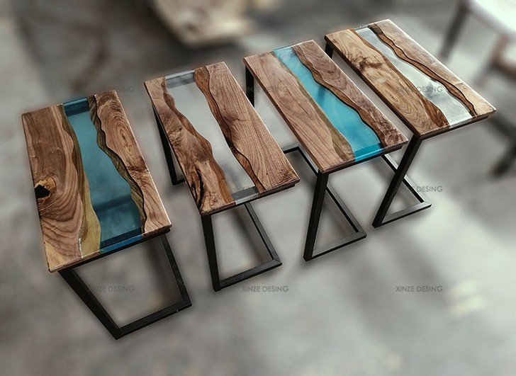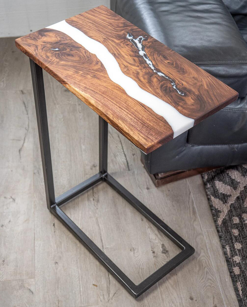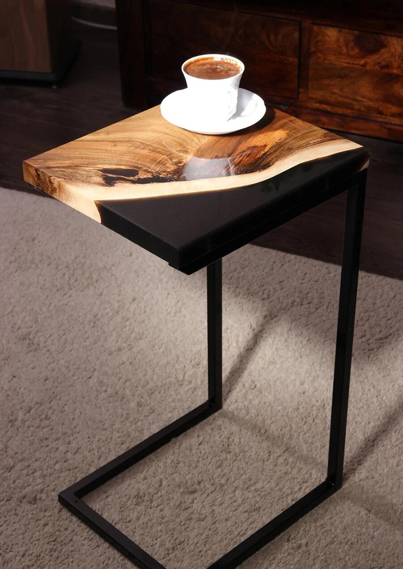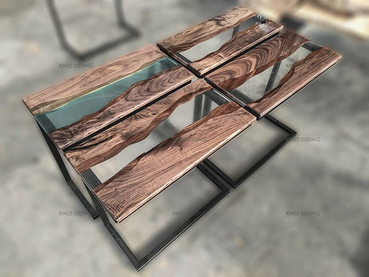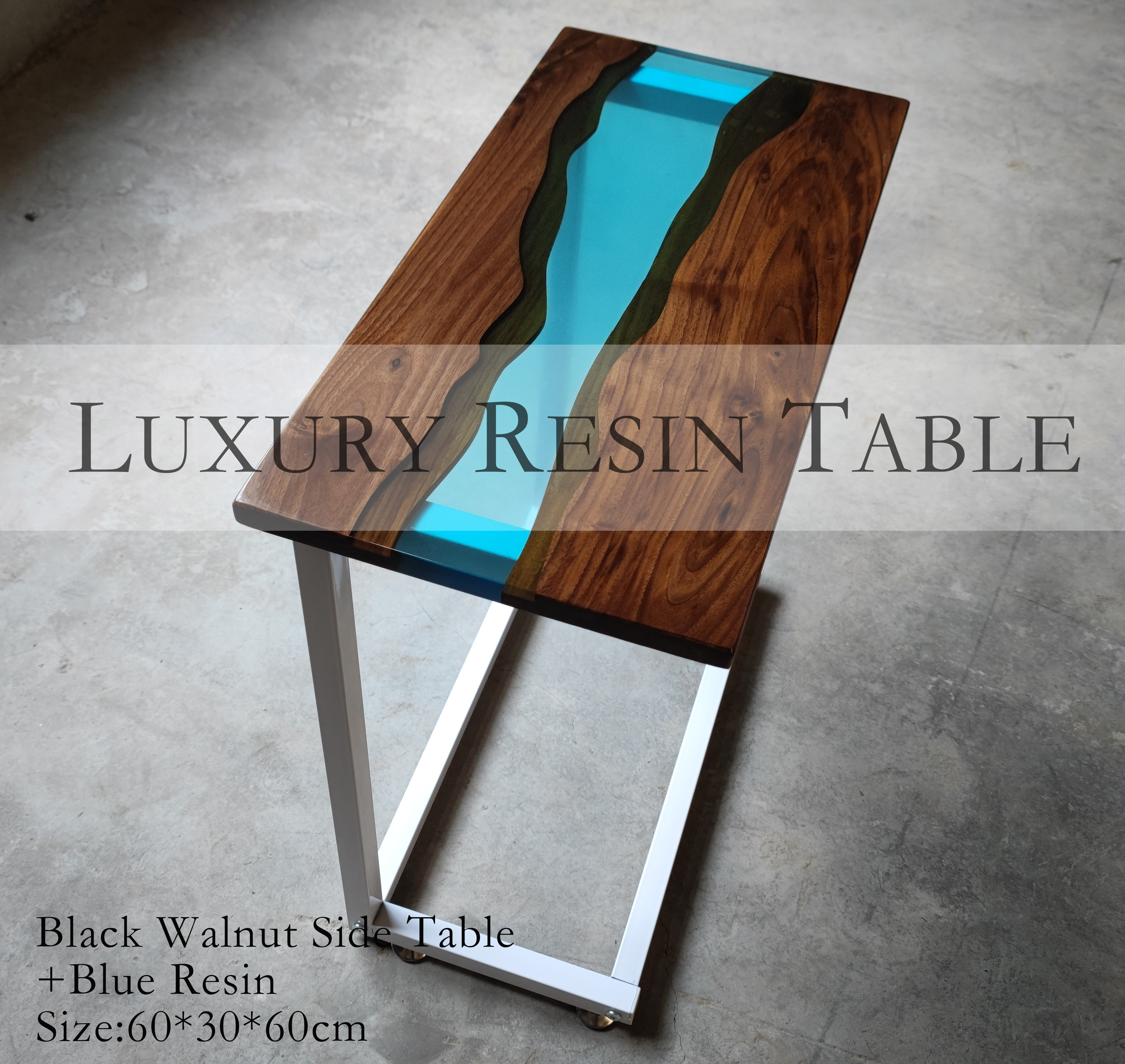 Resin Amber Landscape Table, North American Black Walnut Tea Table, Resin River Table