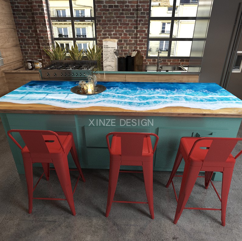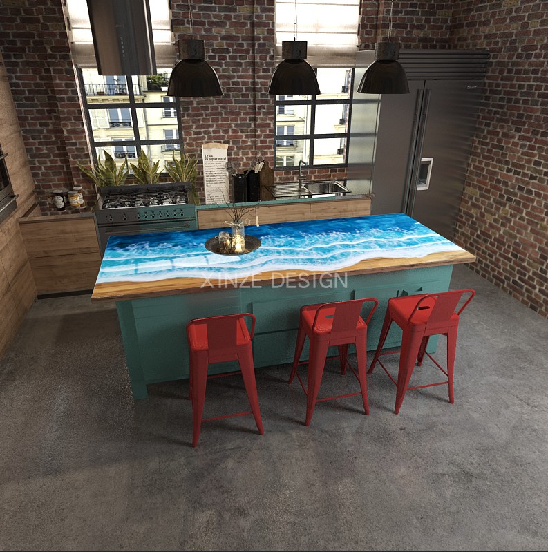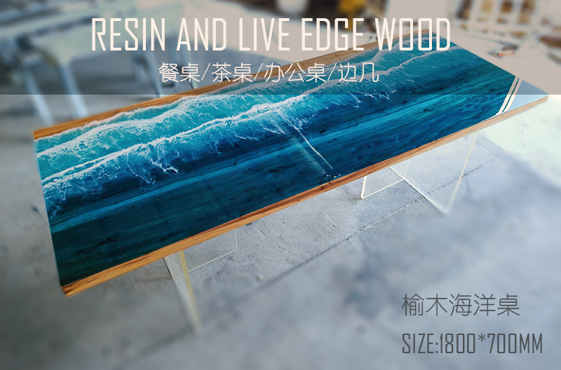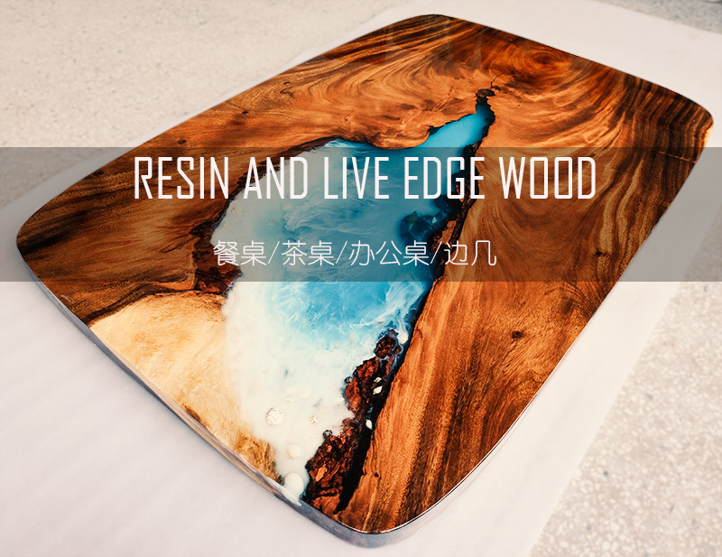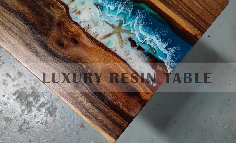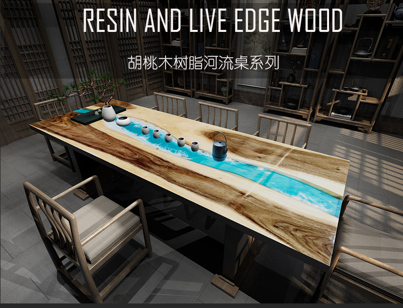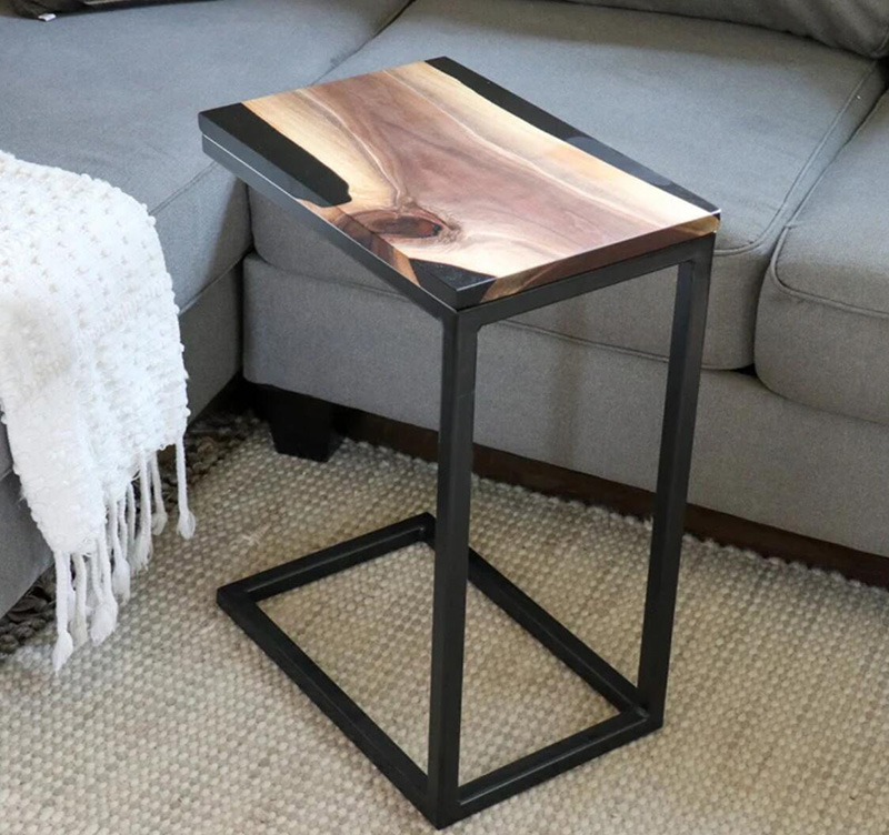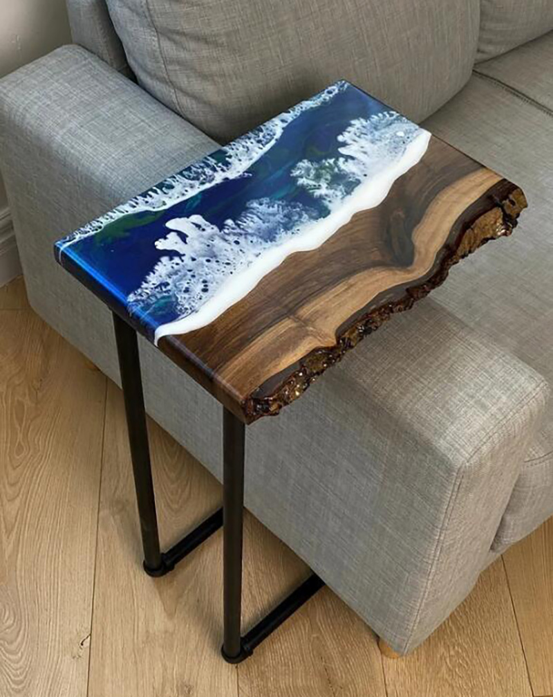 Resin Amber Landscape Table, North American Black Walnut Tea Table, Resin River Table