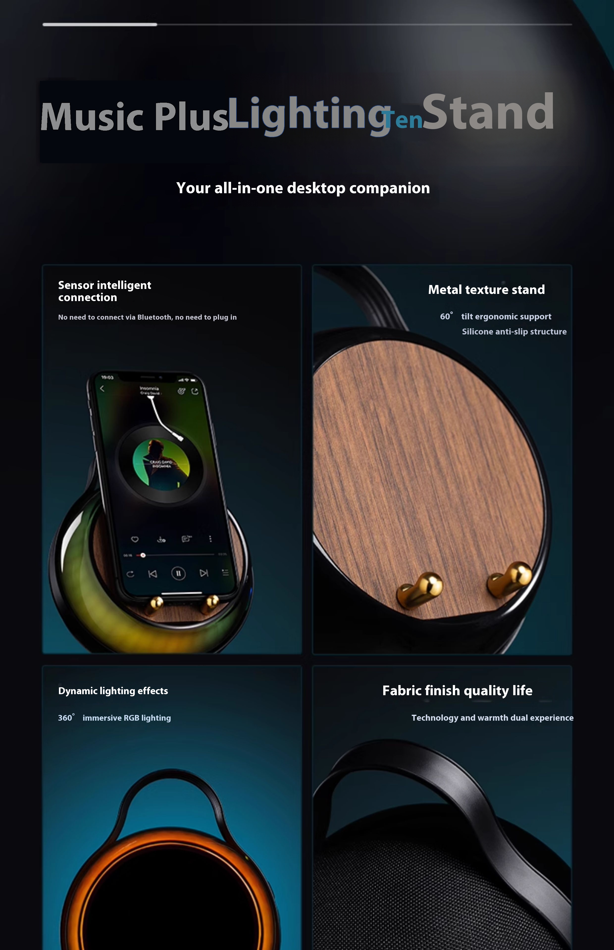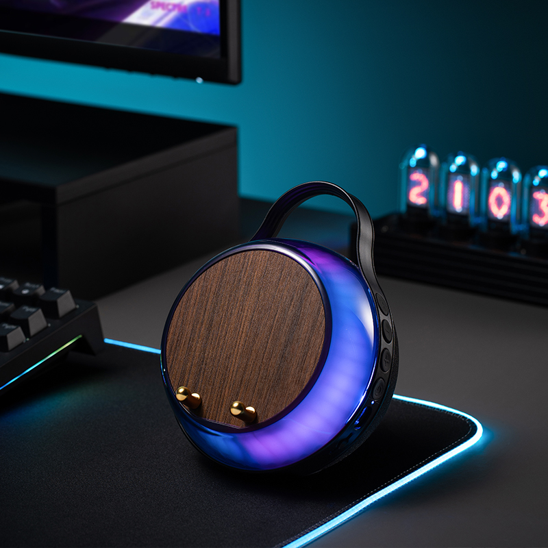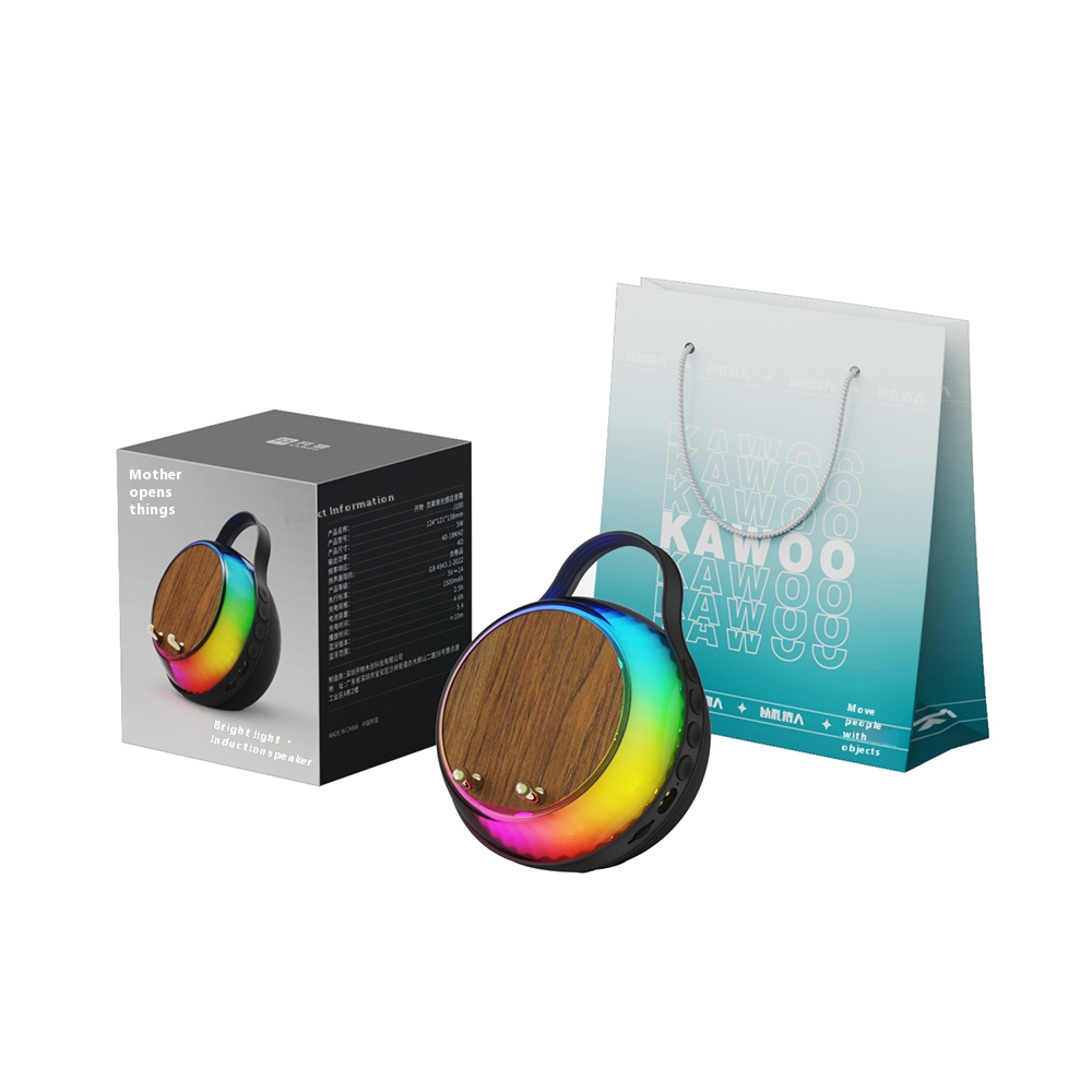 【 Wood grain 】 Induction playback, RGB ambient light, phone holder, multi-mode playback