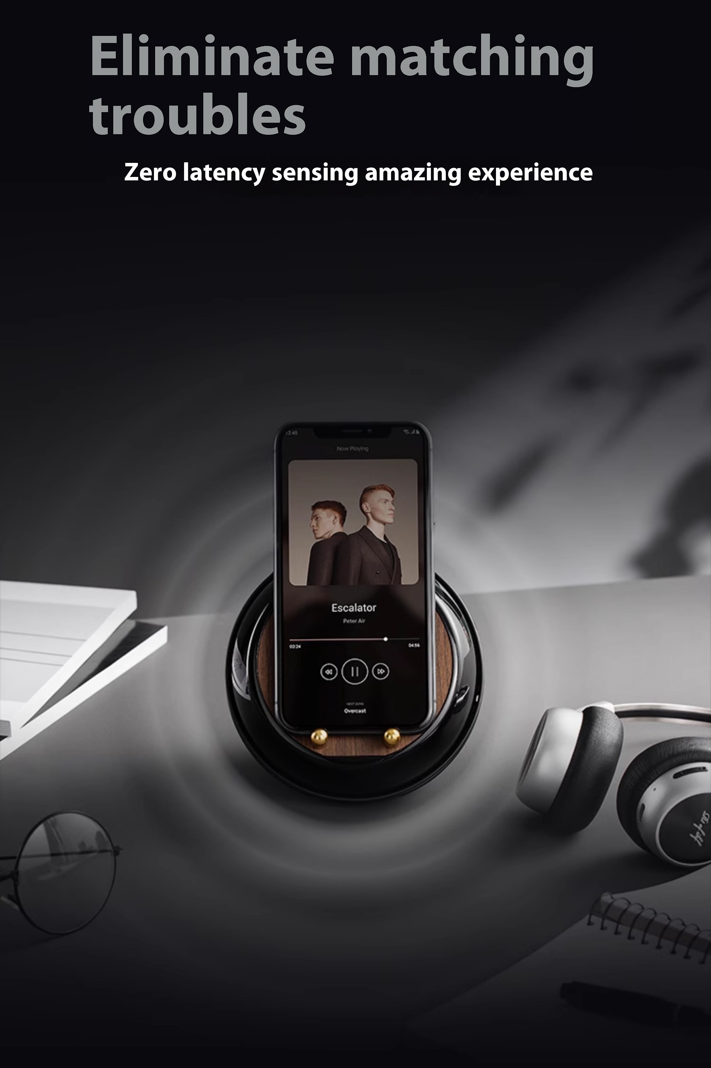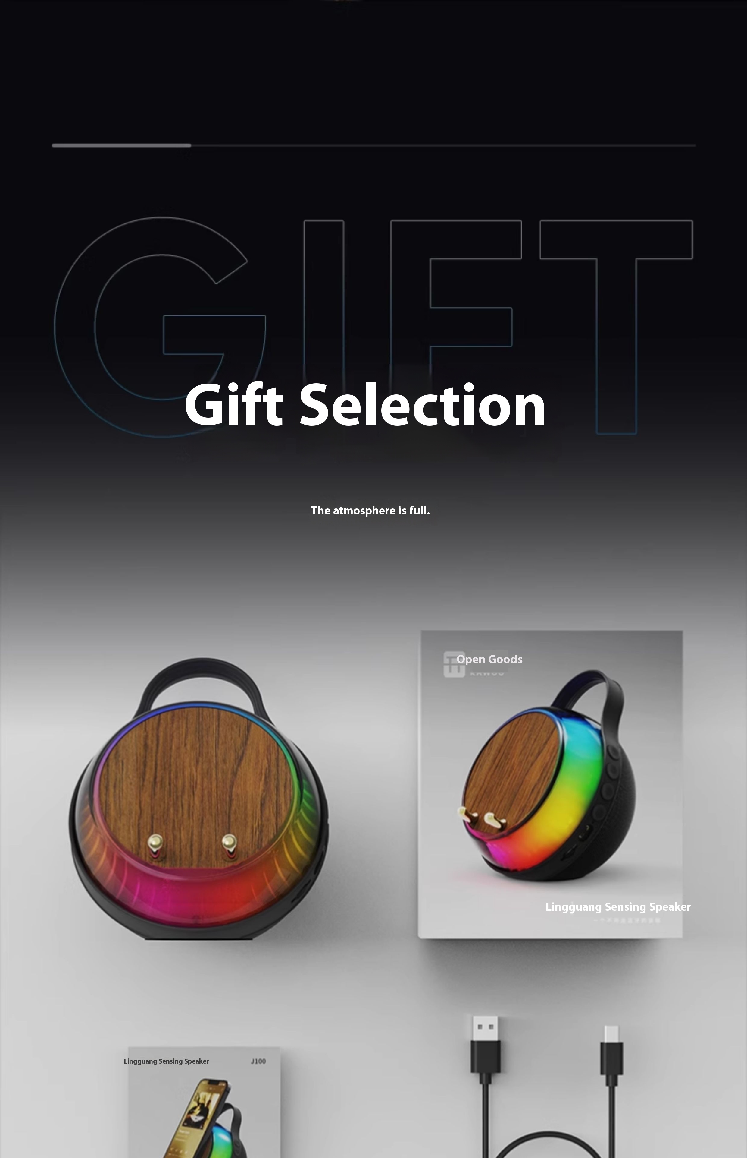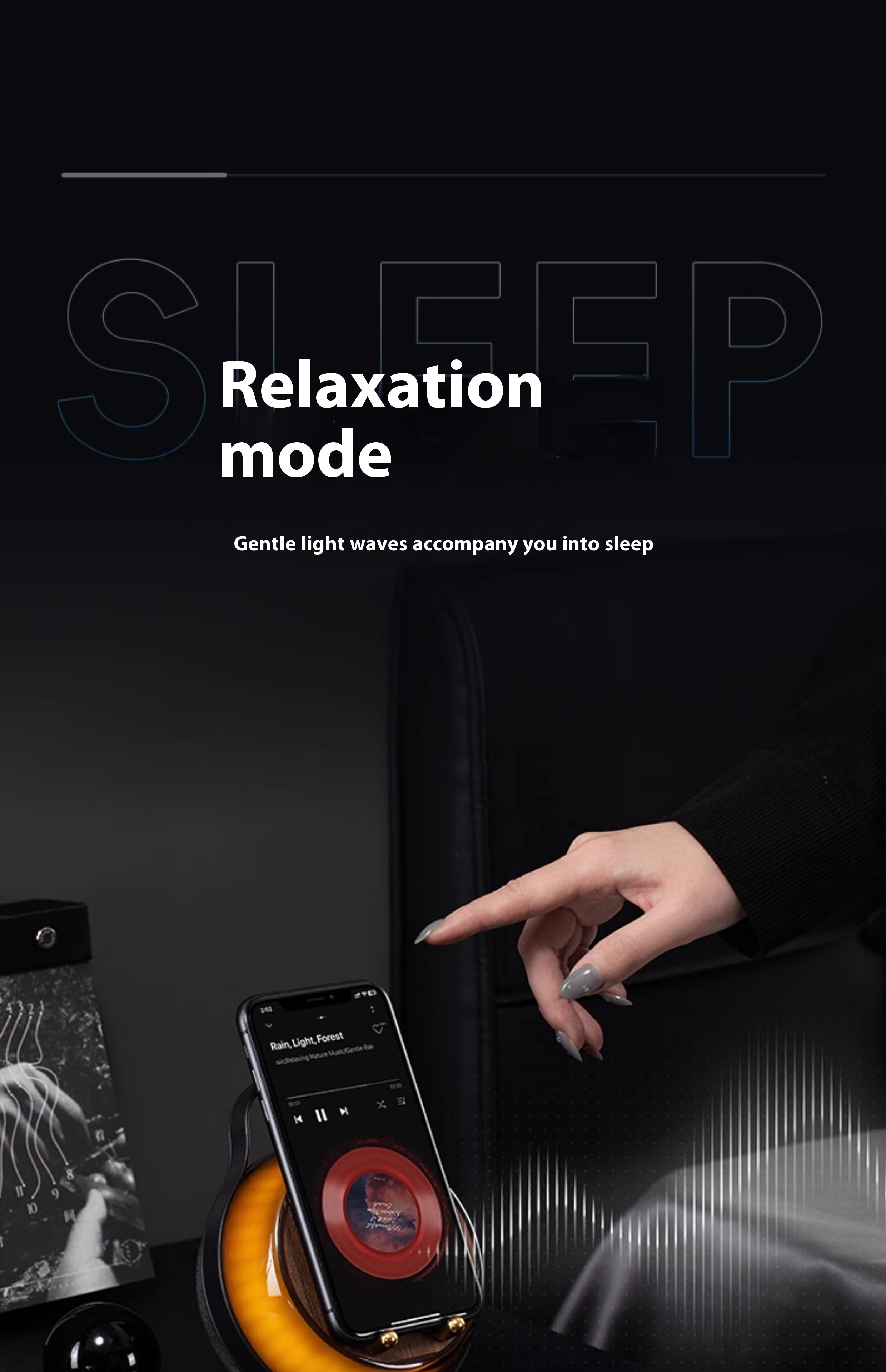 【 Wood grain 】 Induction playback, RGB ambient light, phone holder, multi-mode playback