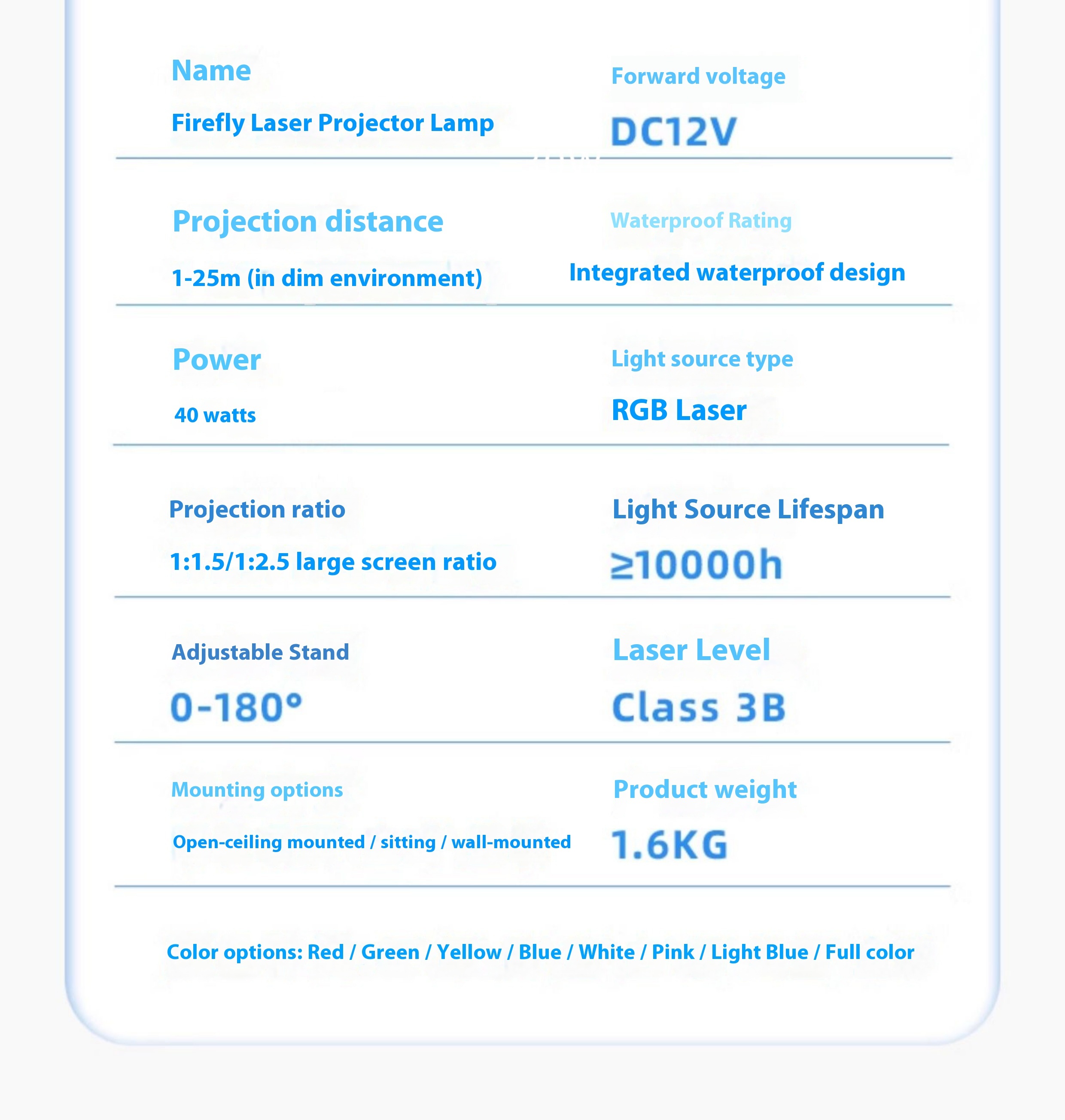 Laser 40W, waterproof remote control, dynamic breathing 2.5 imaging, suitable for 80-220 square meters