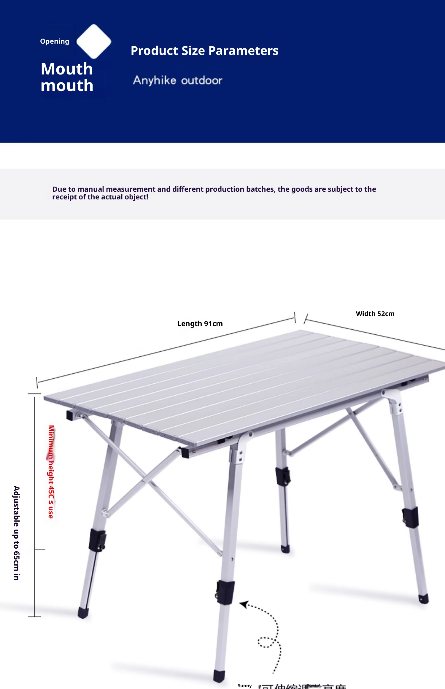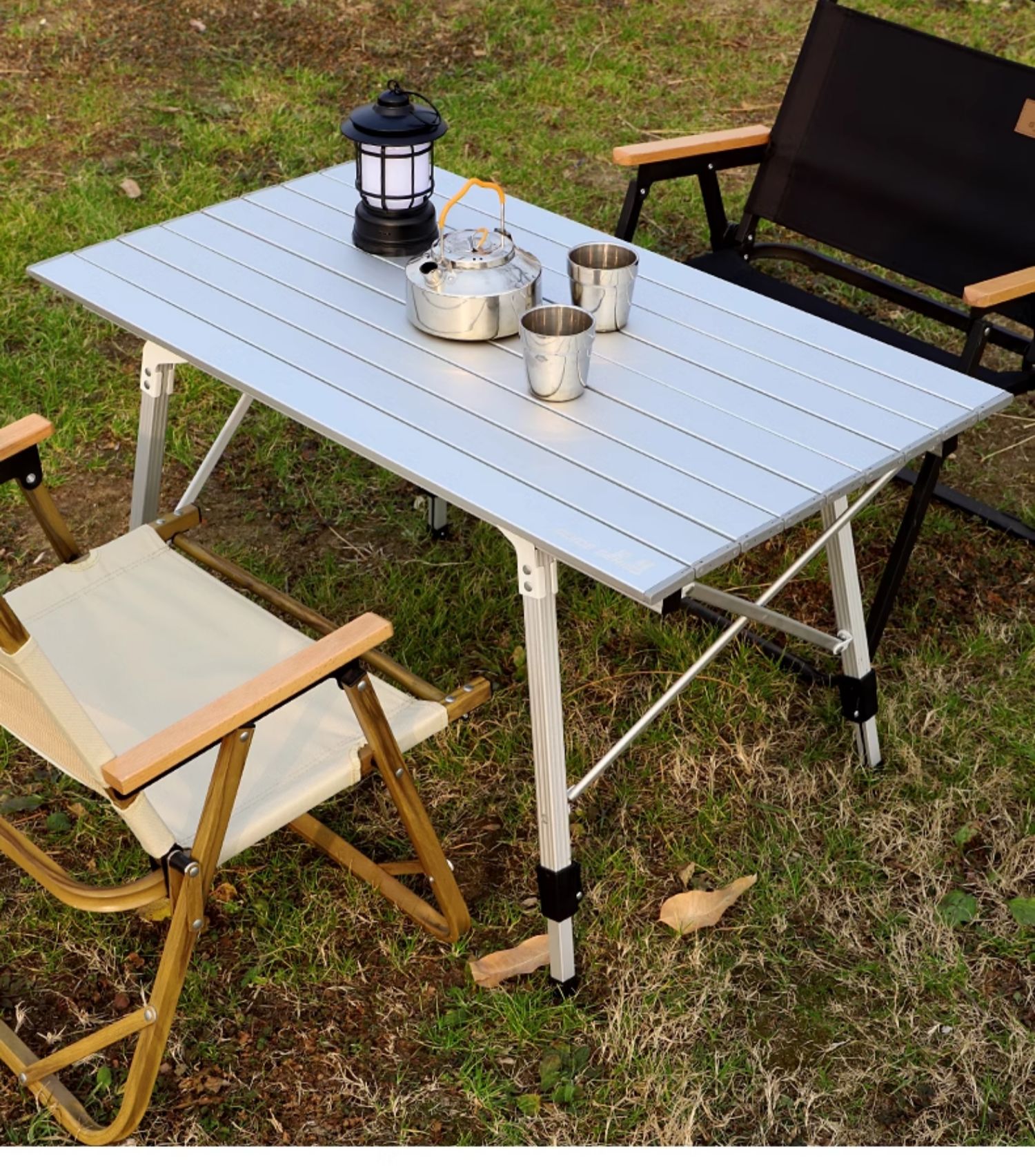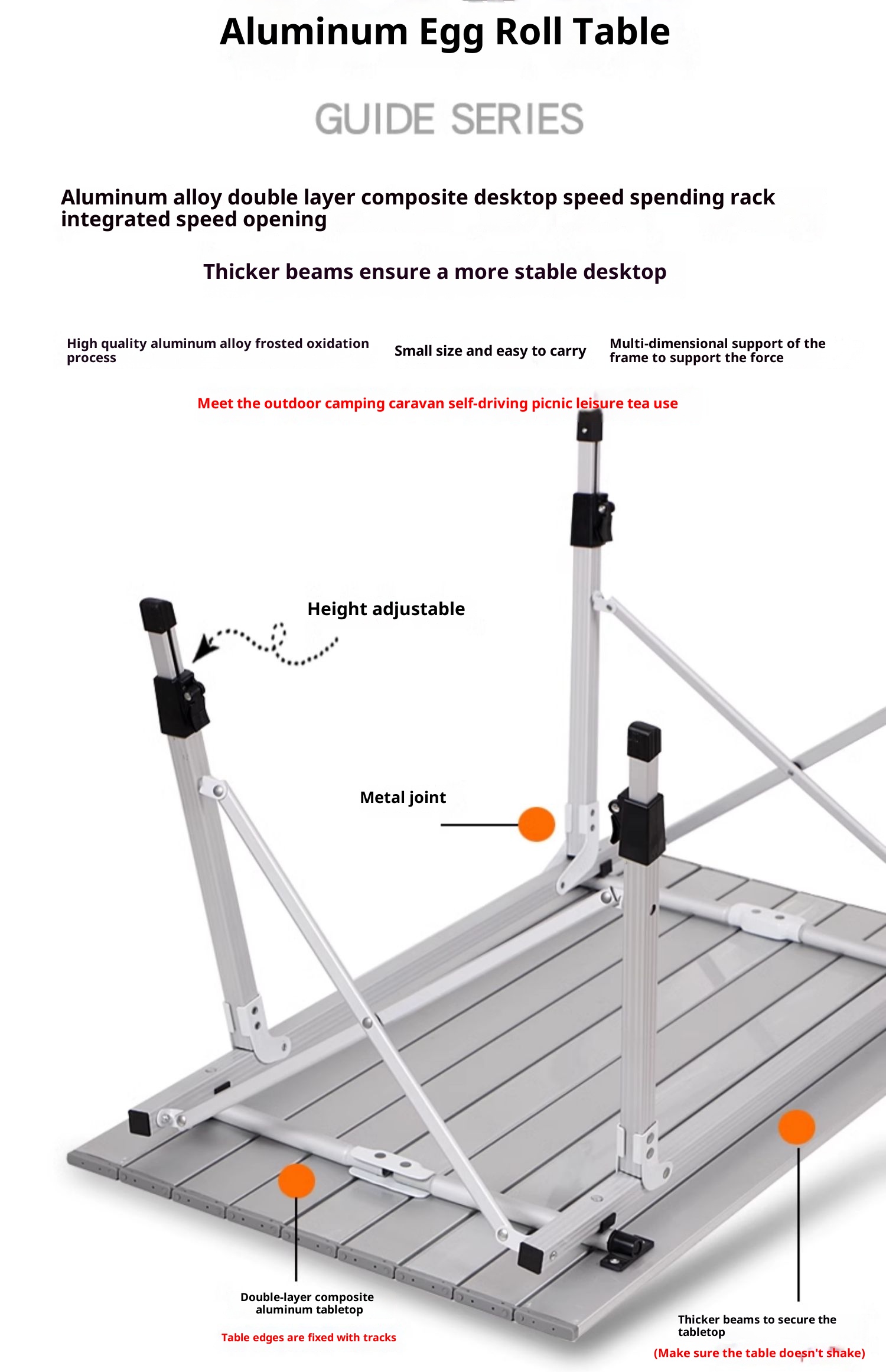 Outdoor aluminum alloy picnic table, foldable portable camping ultra light, adjustable table