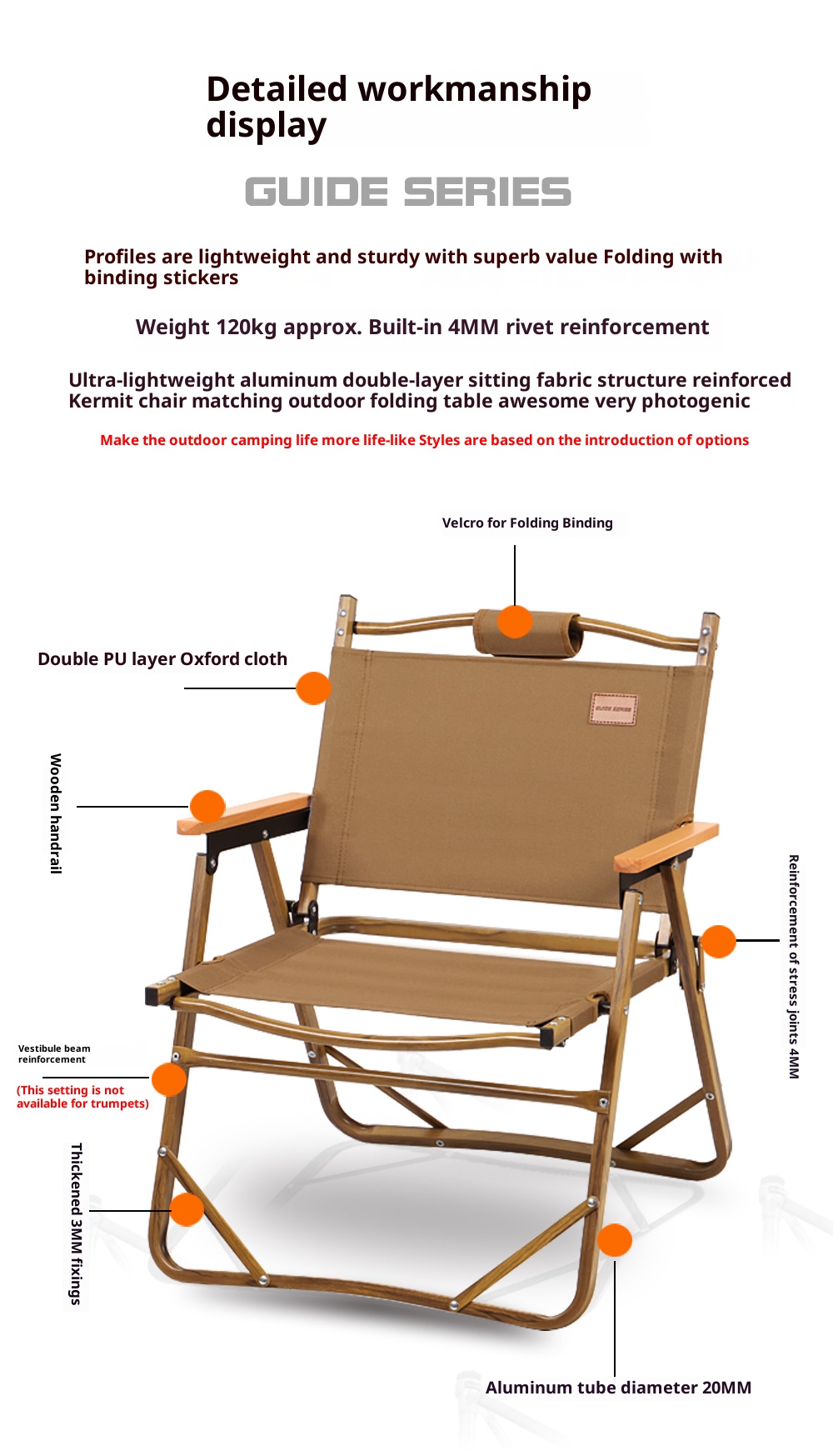 Outdoor aluminum alloy folding chair, camping backrest chair