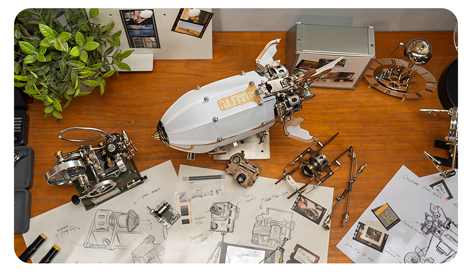 High difficulty, punk style, mechanical assembled airship, boy's gift