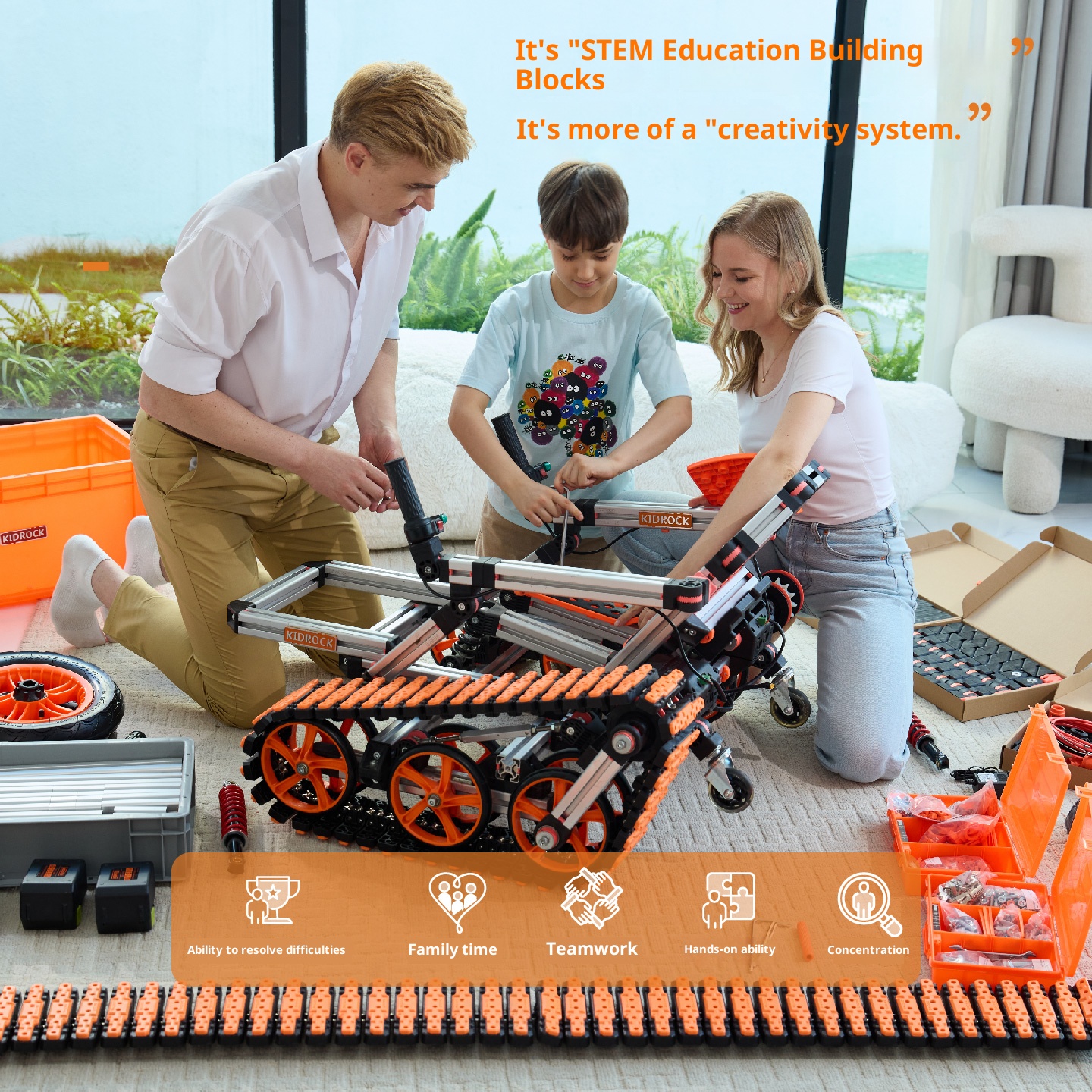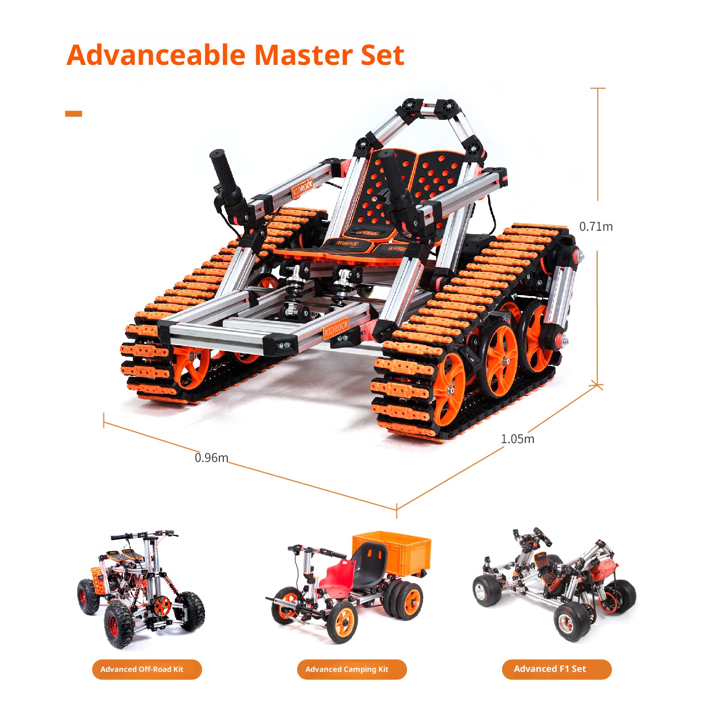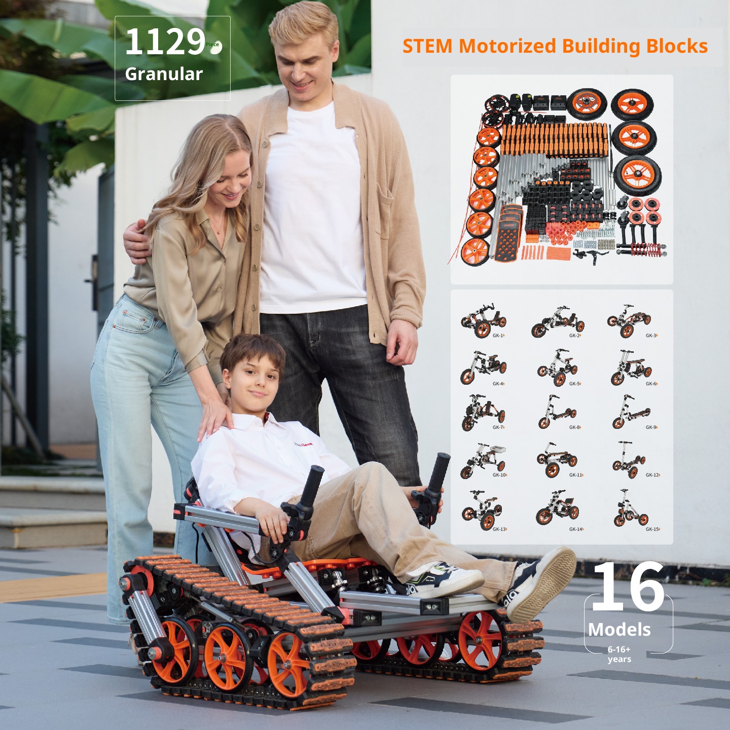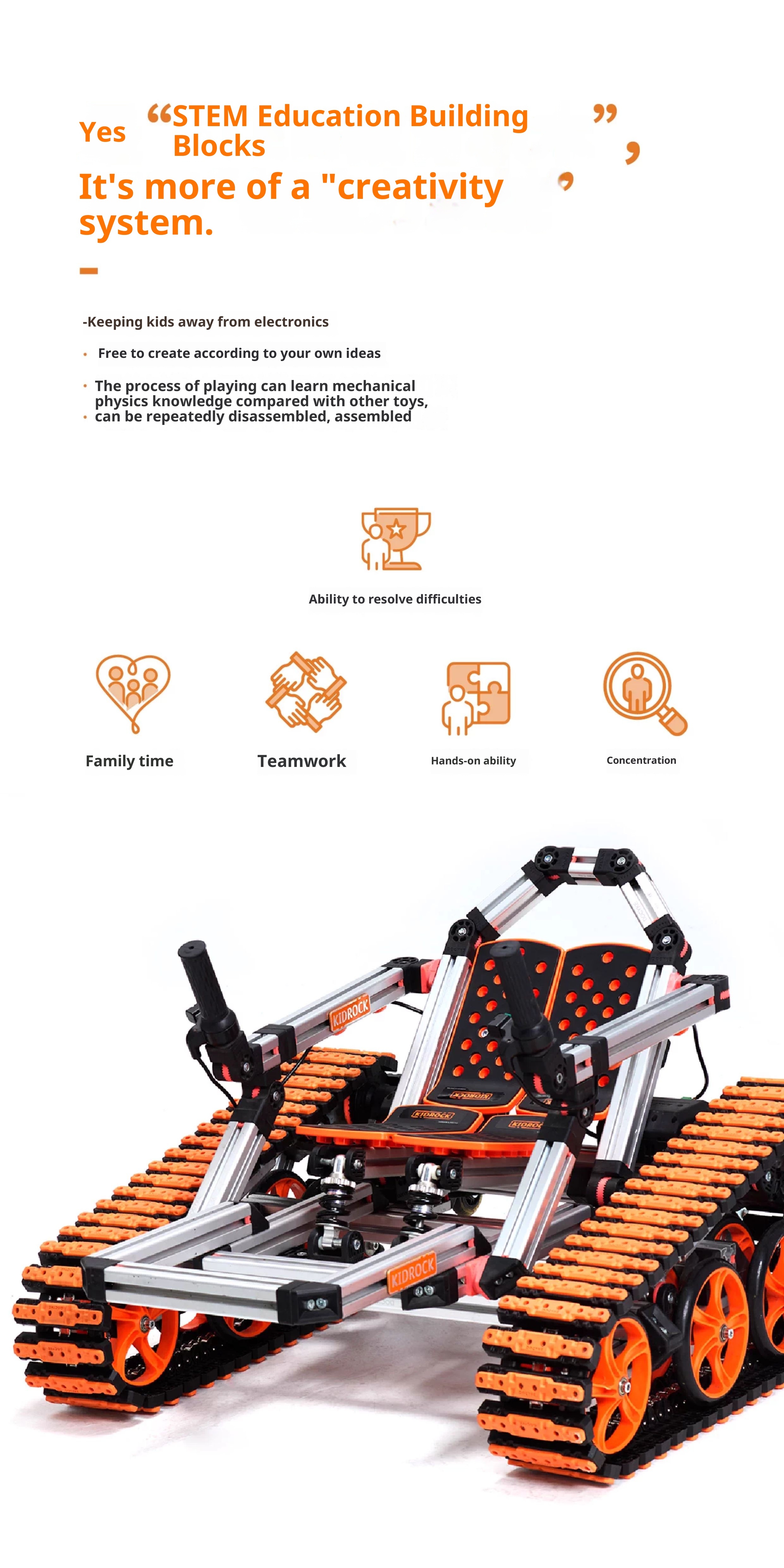 Multi module, interactive tank, self powered, assembled children's car in 16 different forms