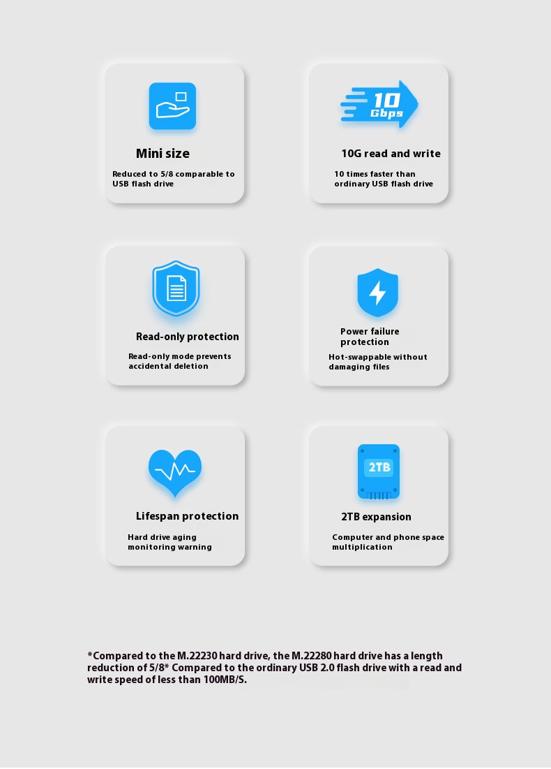 Solid state drive box, external portable hard drive, portable, suitable for computers, tablets, and mobile phones