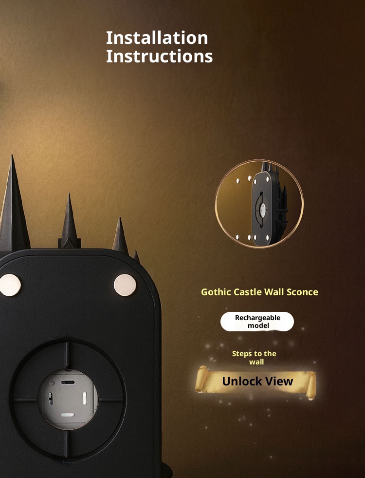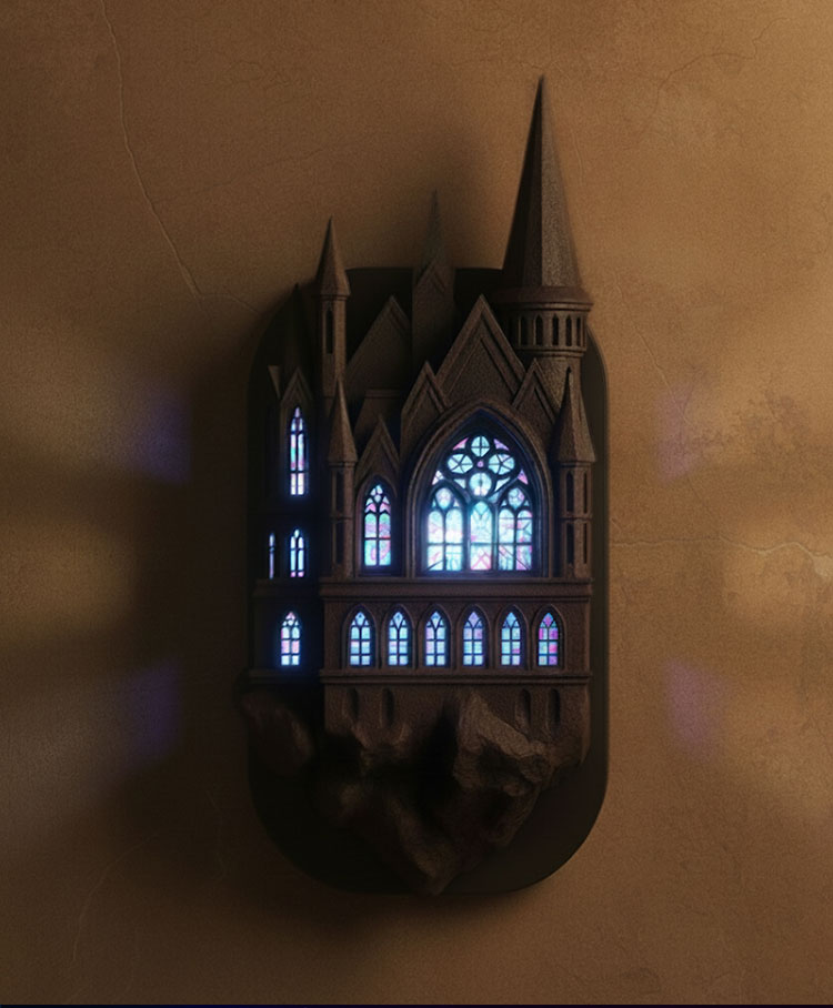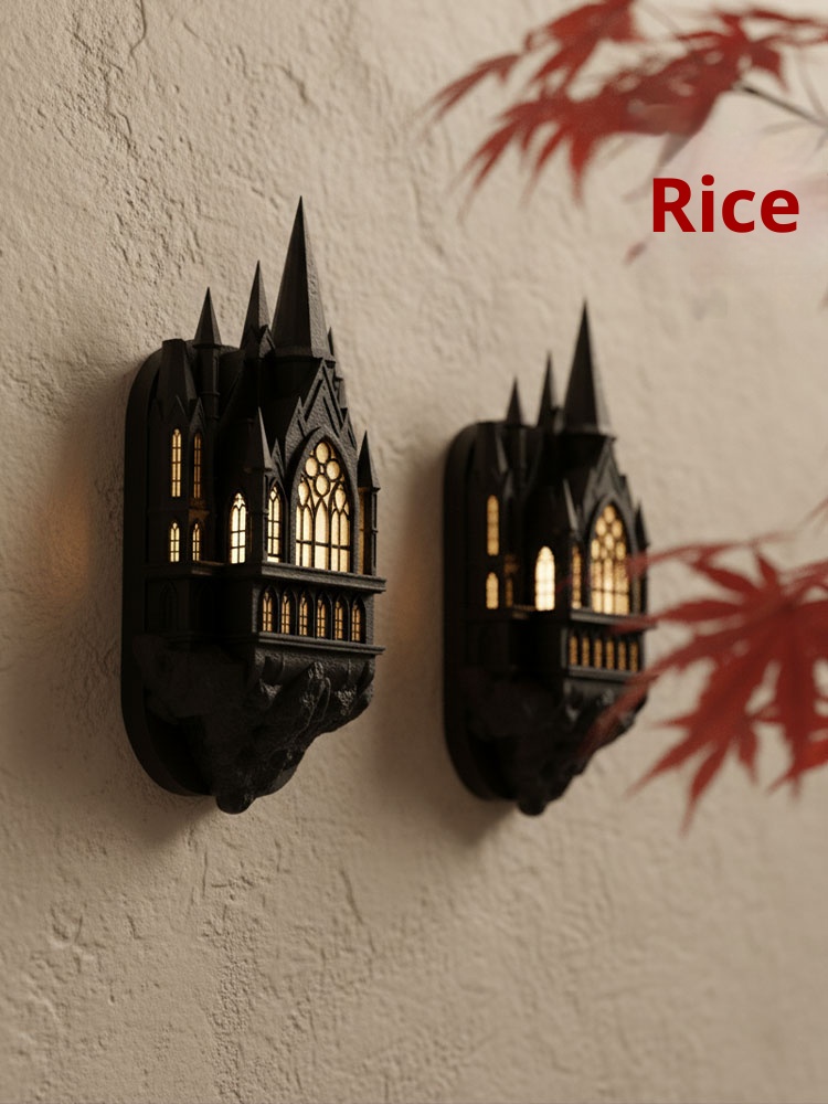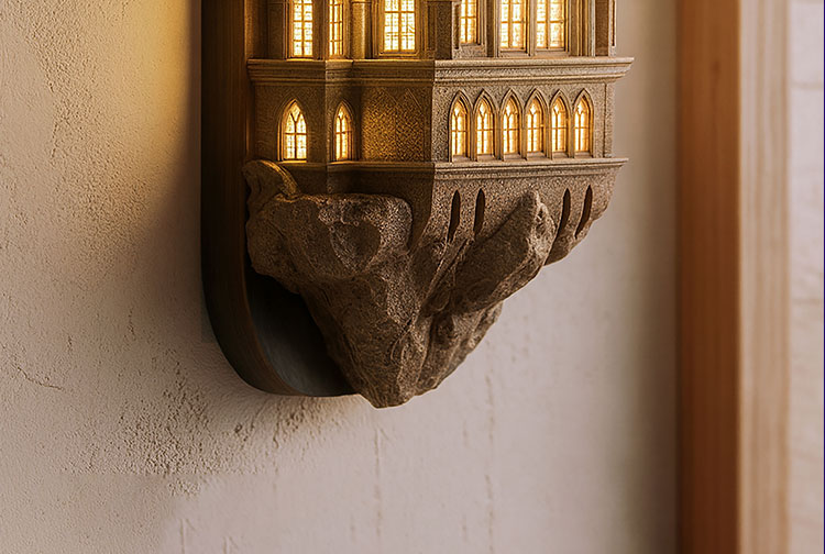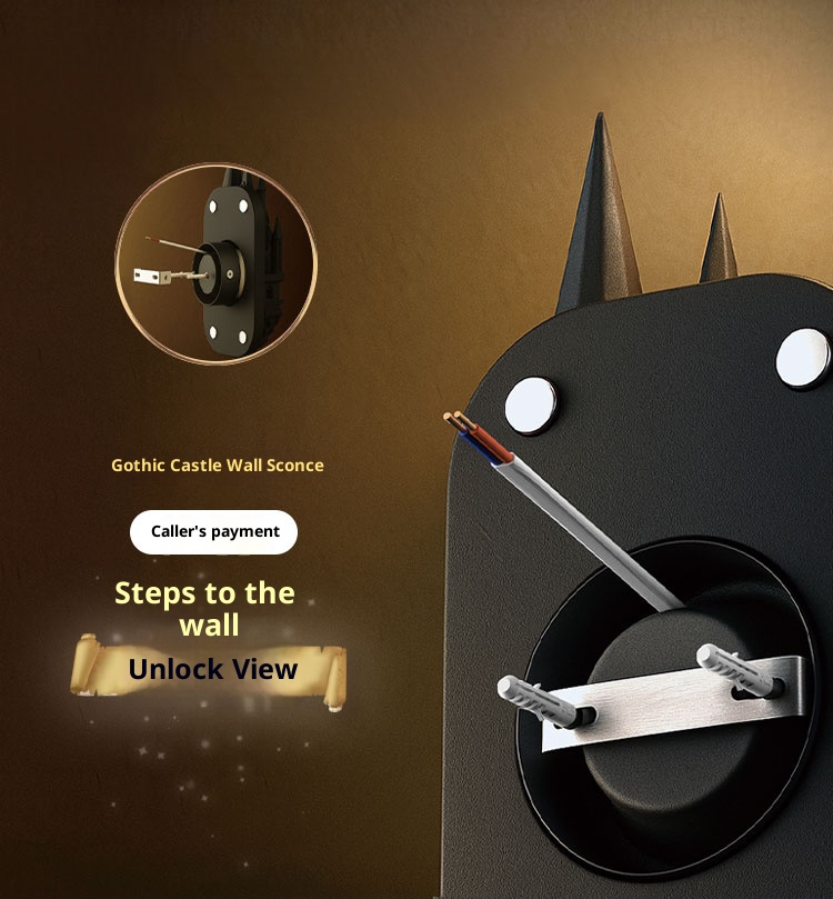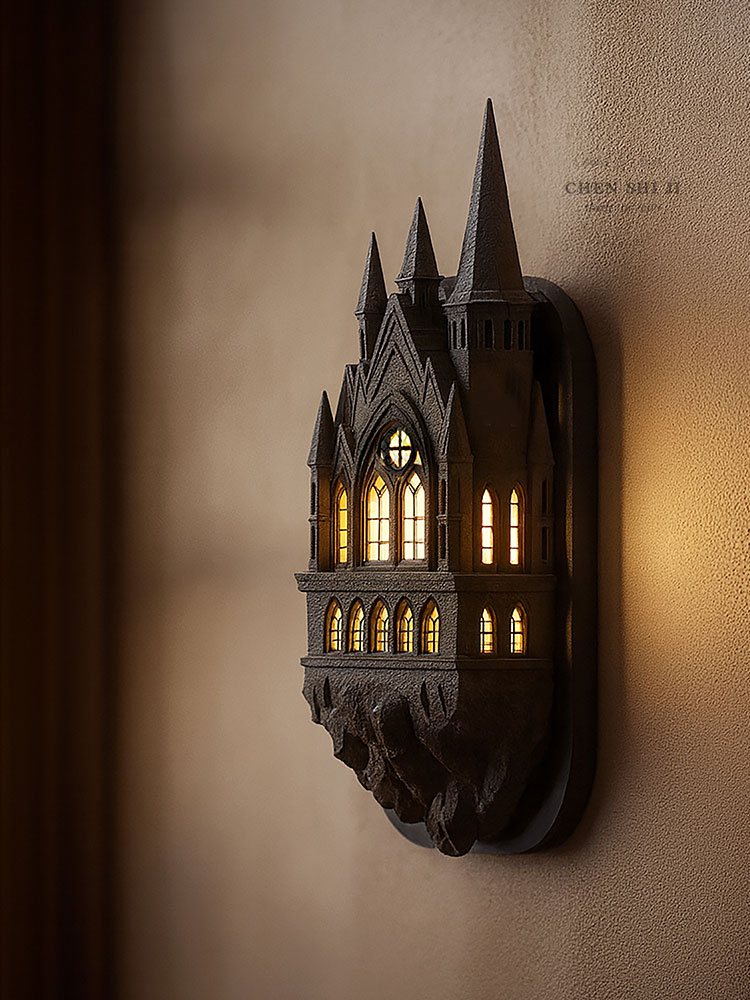 Bedroom architecture, ancient castle wall lights, retro corridor magic atmosphere decorative lights