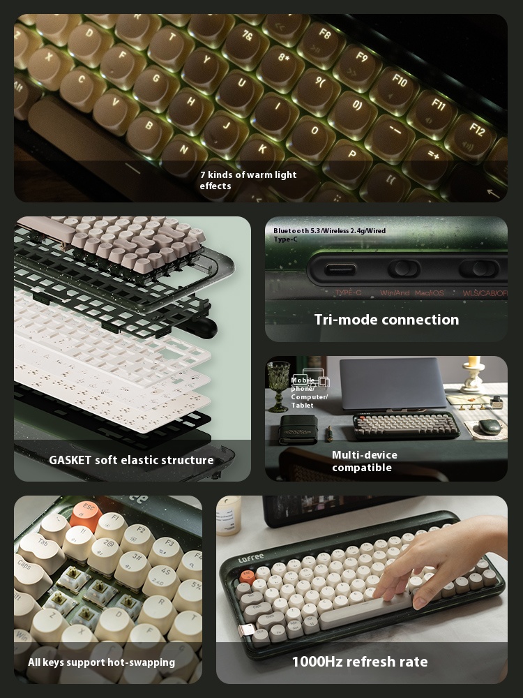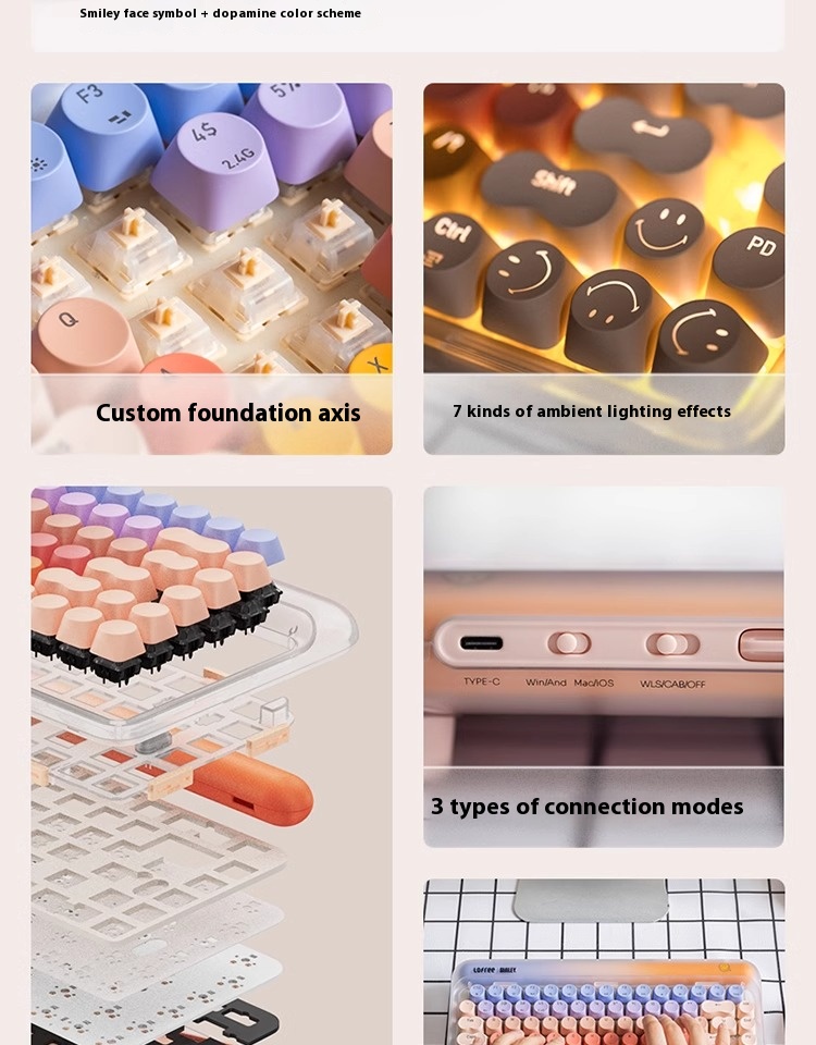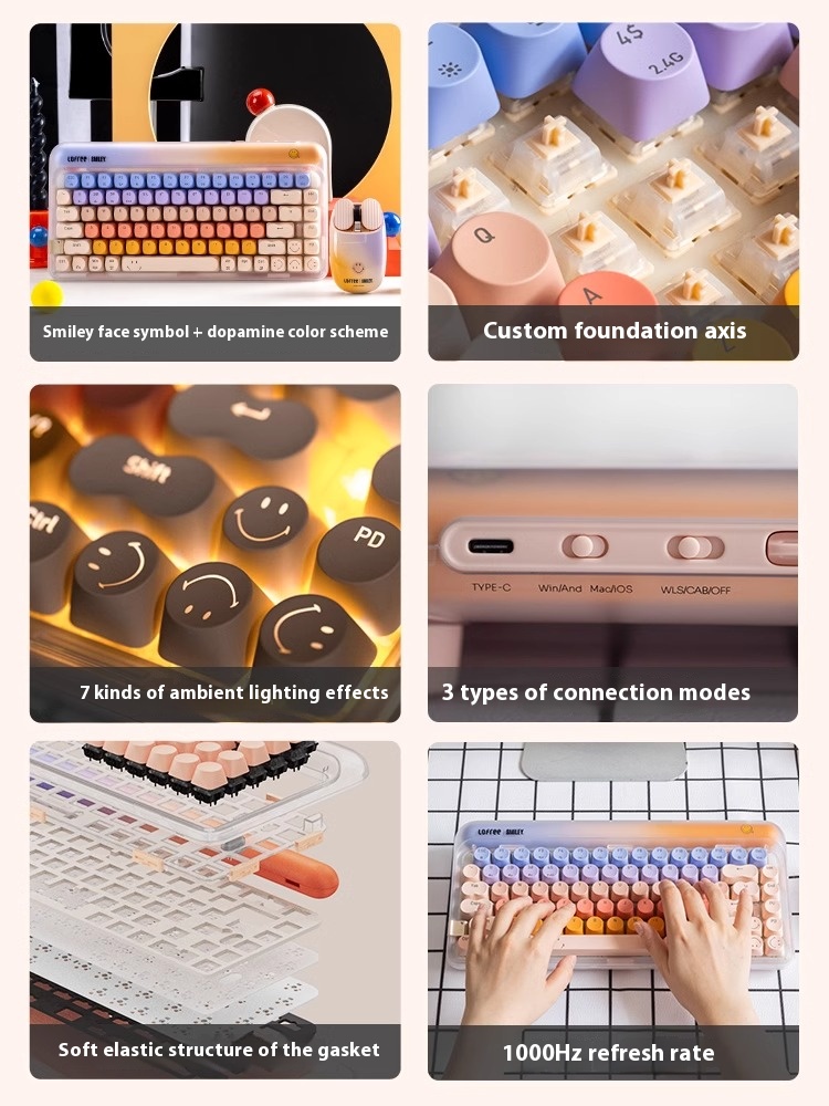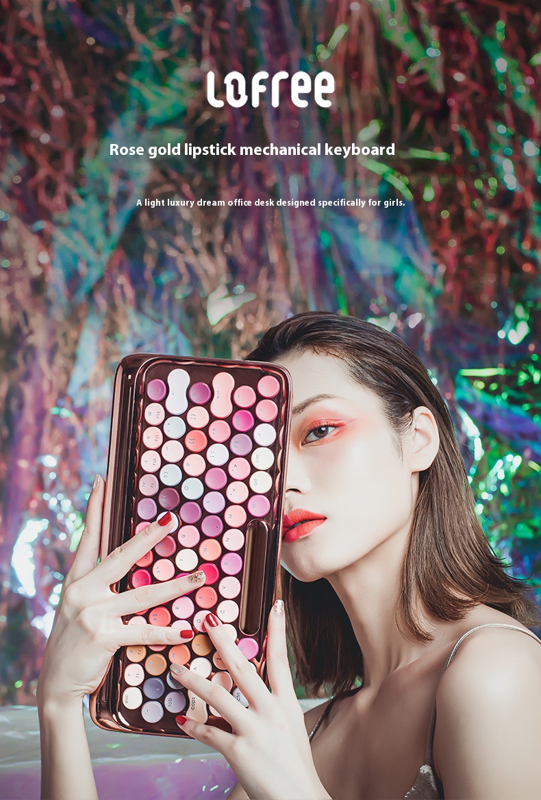 Lipstick Rose Gold liquid foundation Smiley Face Wireless Bluetooth Mechanical Keyboard