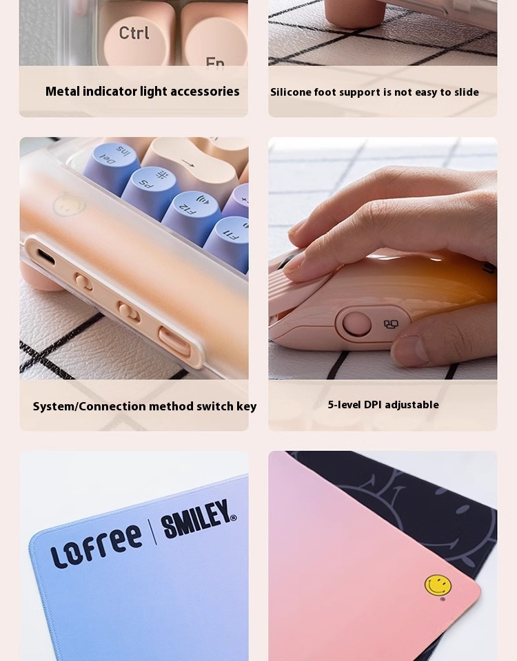 9Smileyl smiley face keyboard+mouse 84 key foundation make-up axis