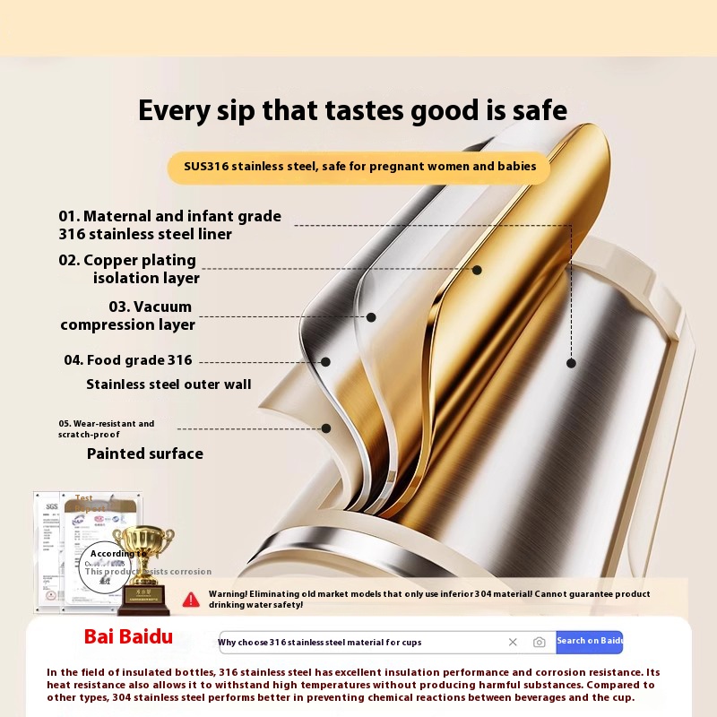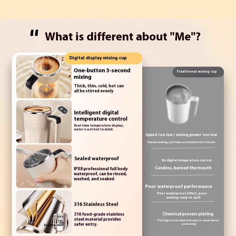 Coffee color 450ML [Intelligent digital display+316 stainless steel+IPX7 whole machine waterproof+strong stirring]