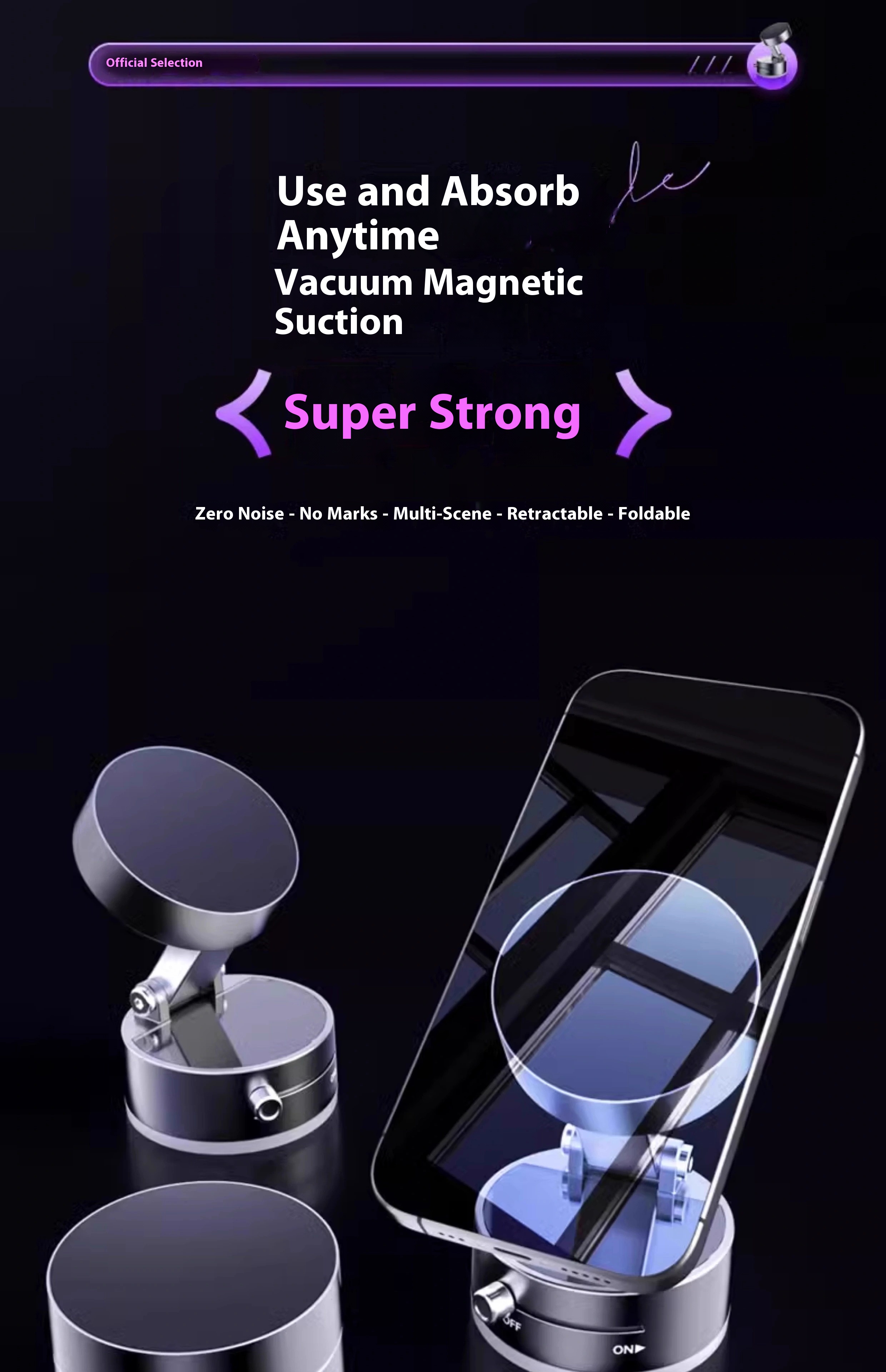 Magnetic suction+vacuum head: bidirectional adsorption. black