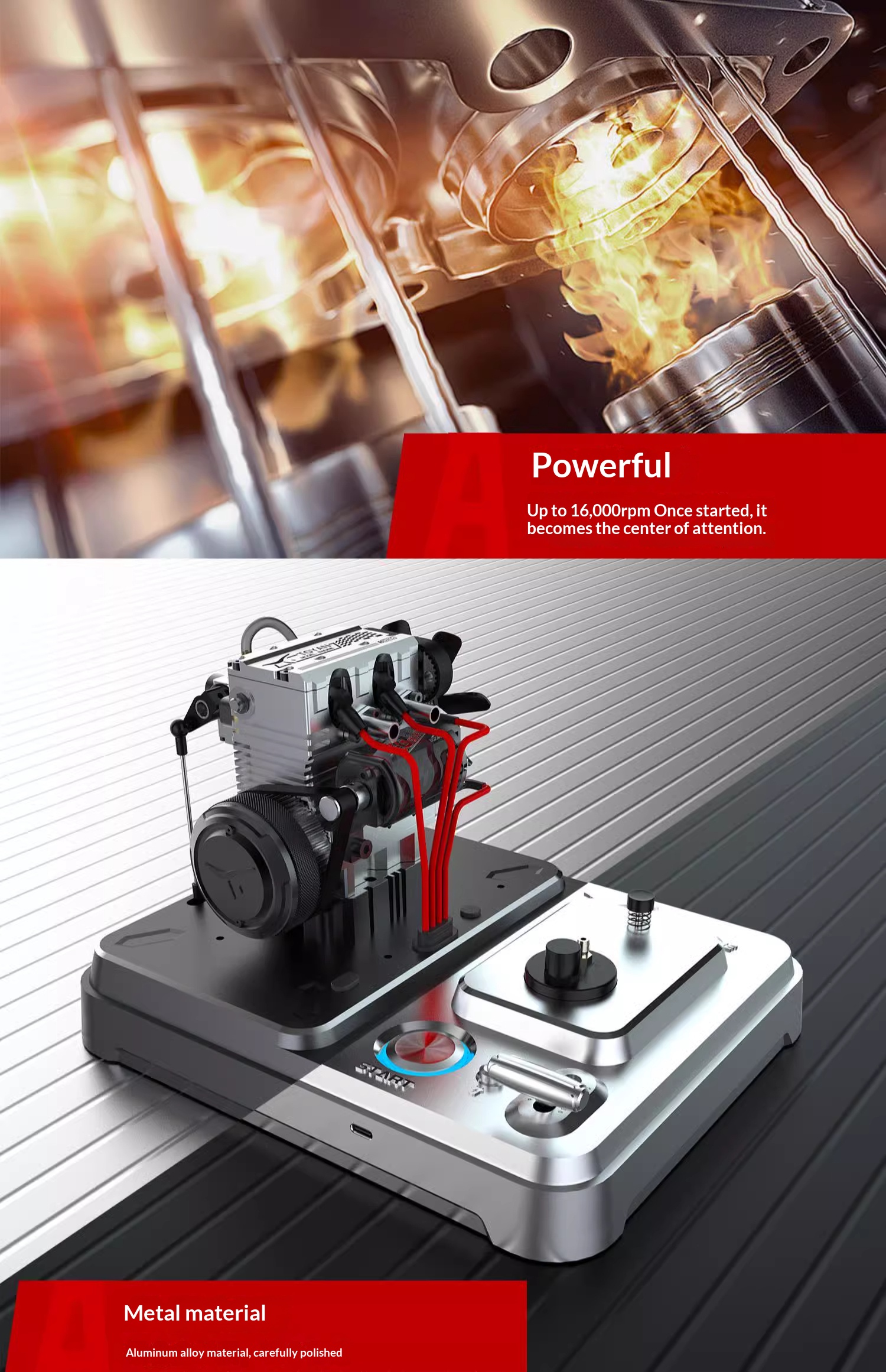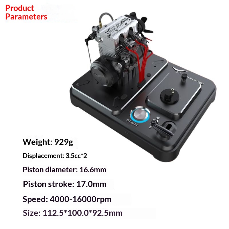 All metal twin cylinder engine, methanol fuel assembled micro engine model
