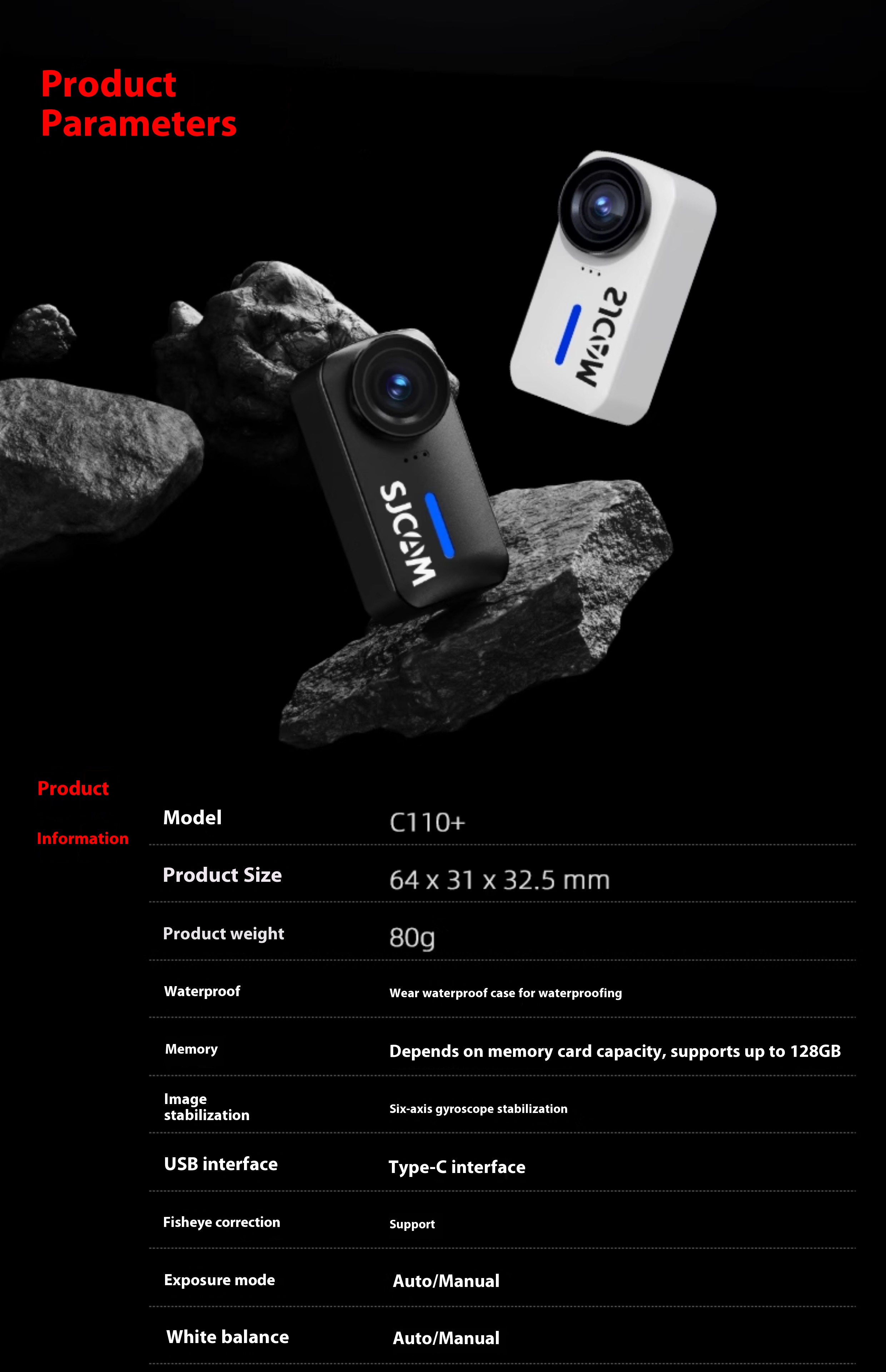 C110+Upgraded Version [Strong Anti Shake 4K Night Vision] 3H battery life, 64GB memory