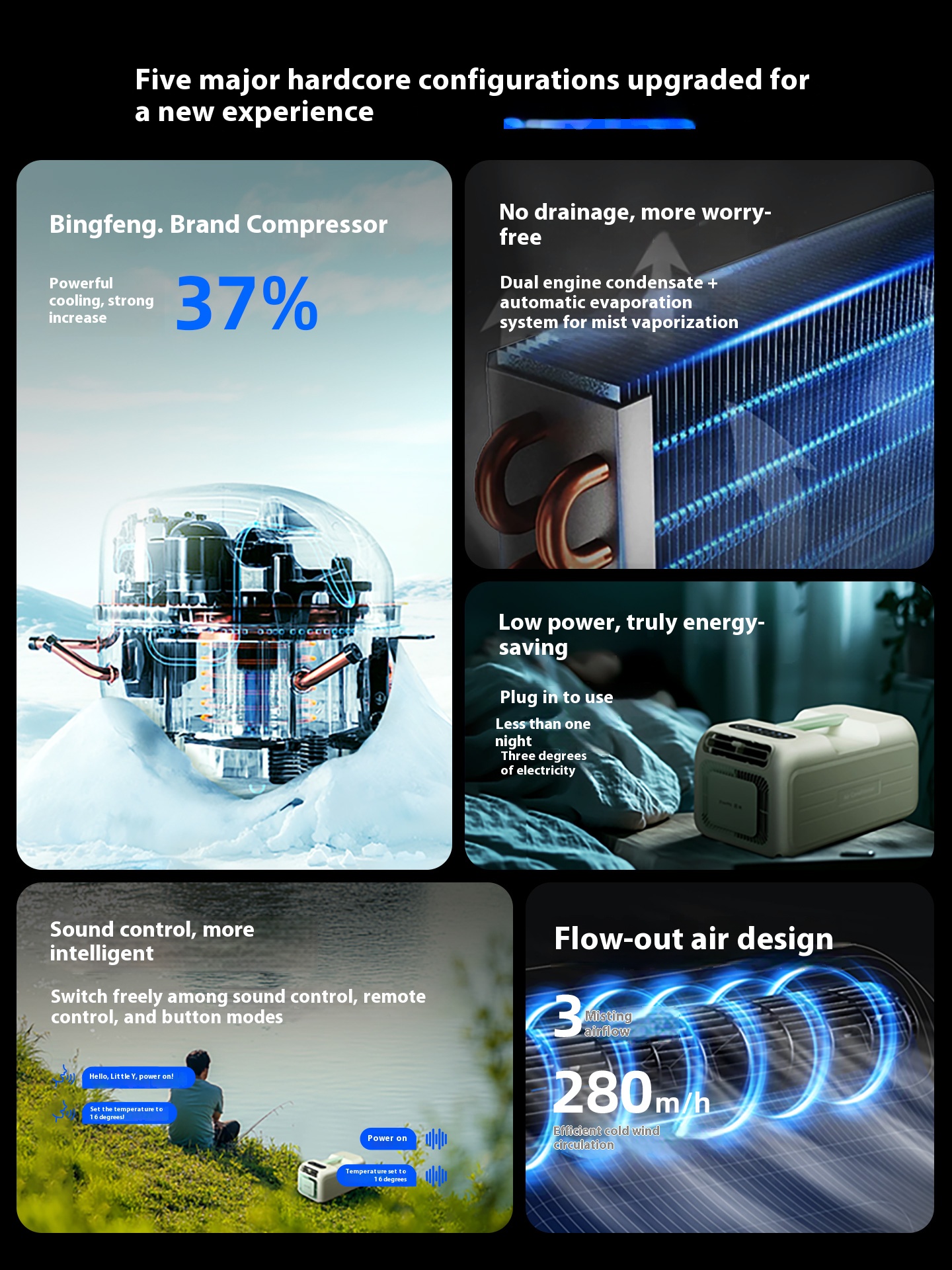 Car mounted, outdoor, tent, camping, portable mobile small air conditioning, integrated outdoor unit
