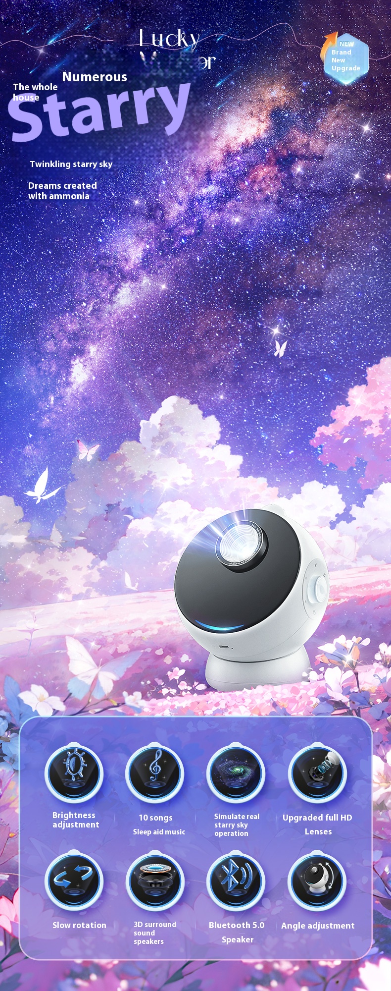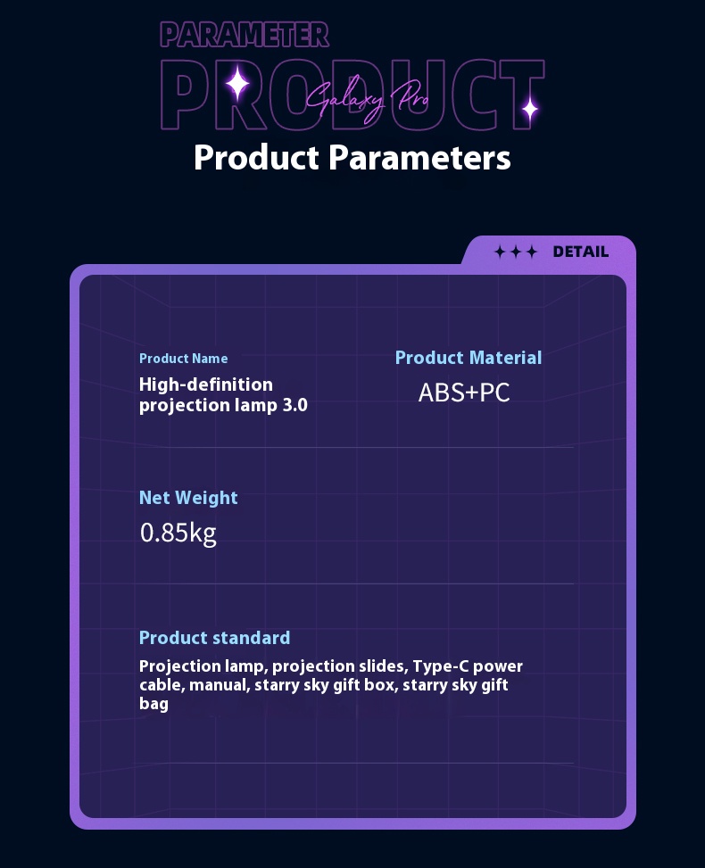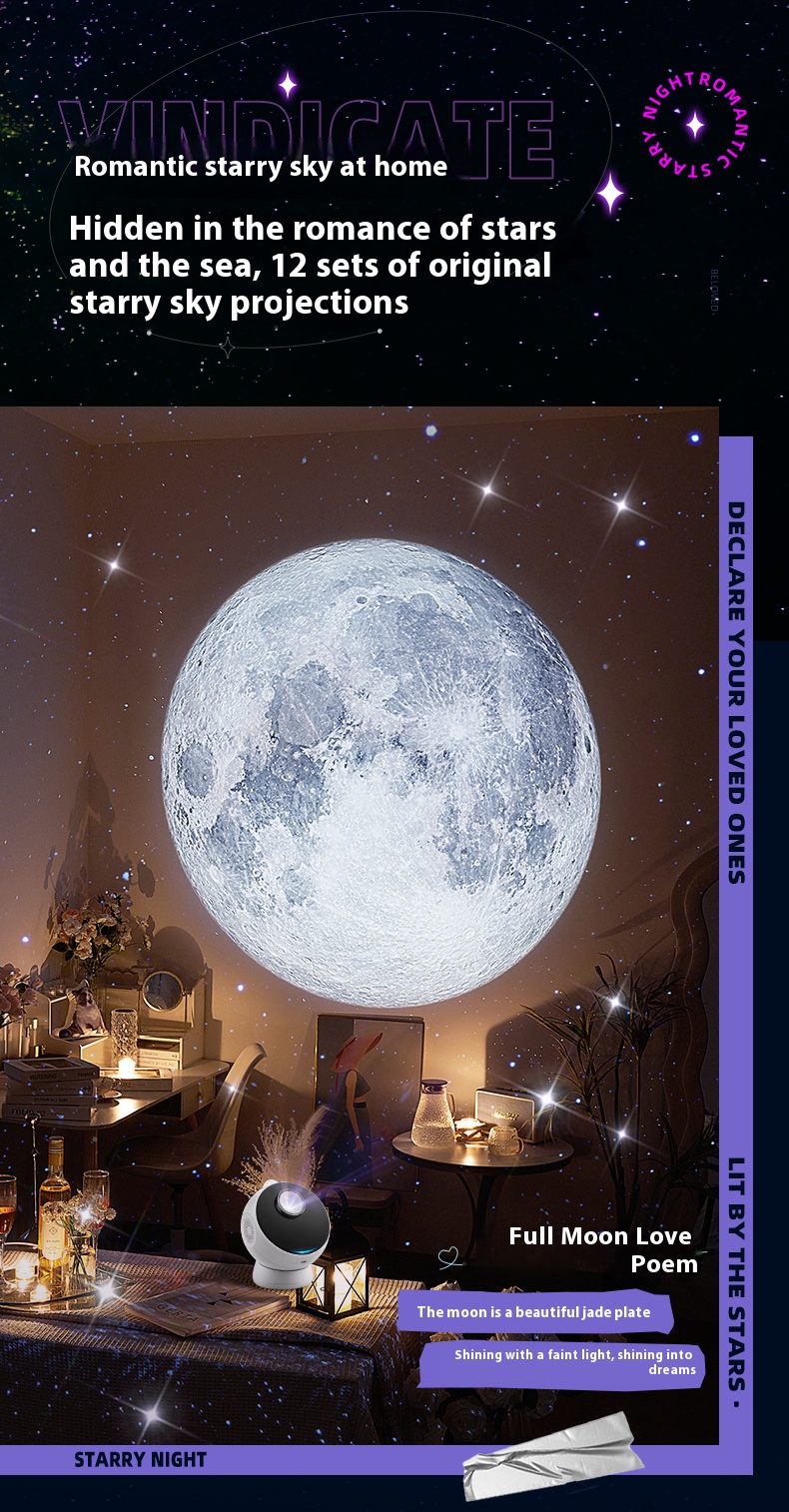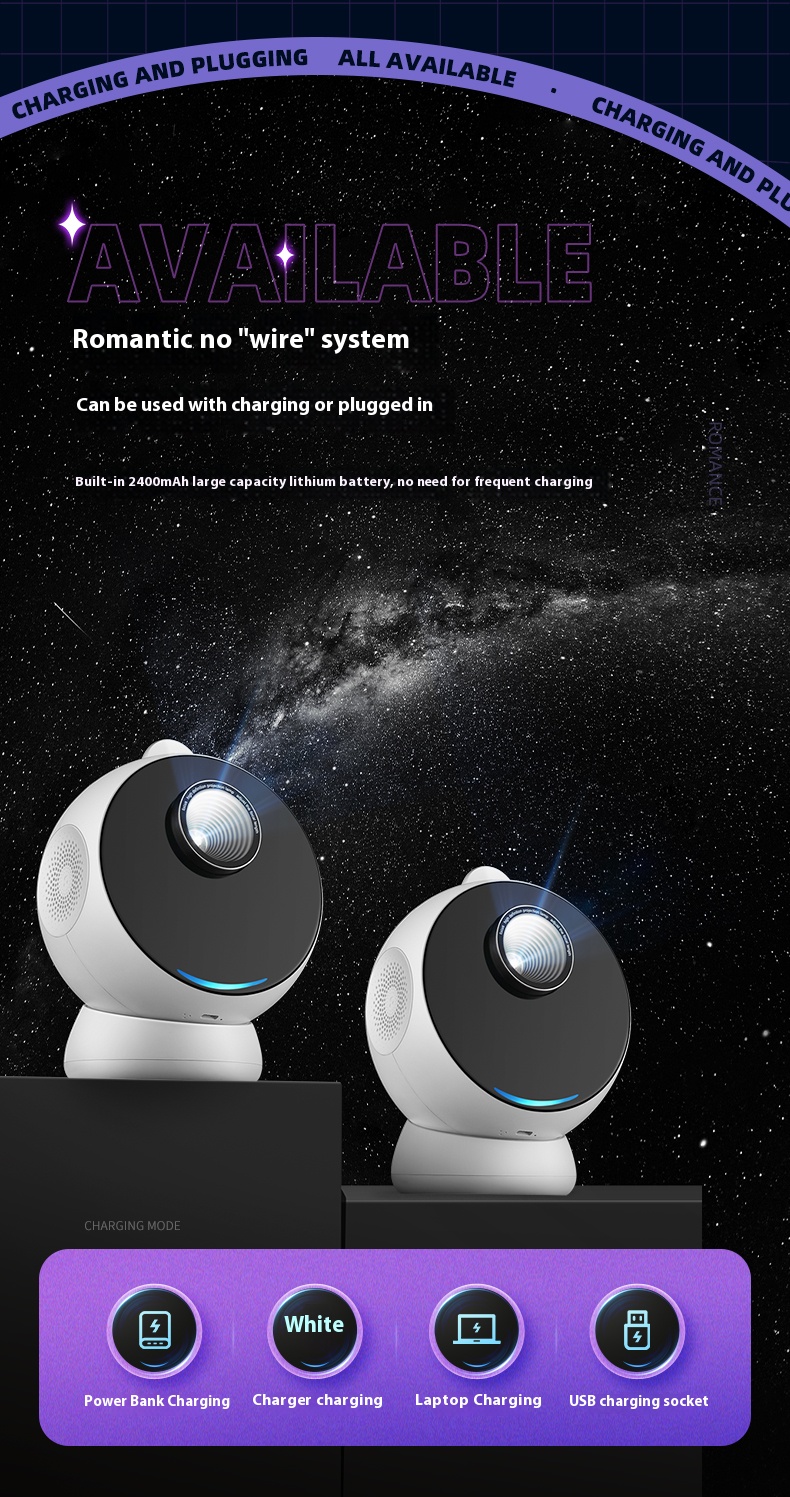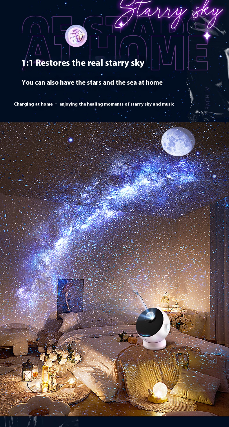 Equipped with sound system, starry sky projector, night light atmosphere lamp, birthday gift