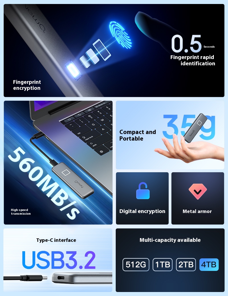 Fingerprint encryption for solid-state drives/mobile phones and computers/external storage