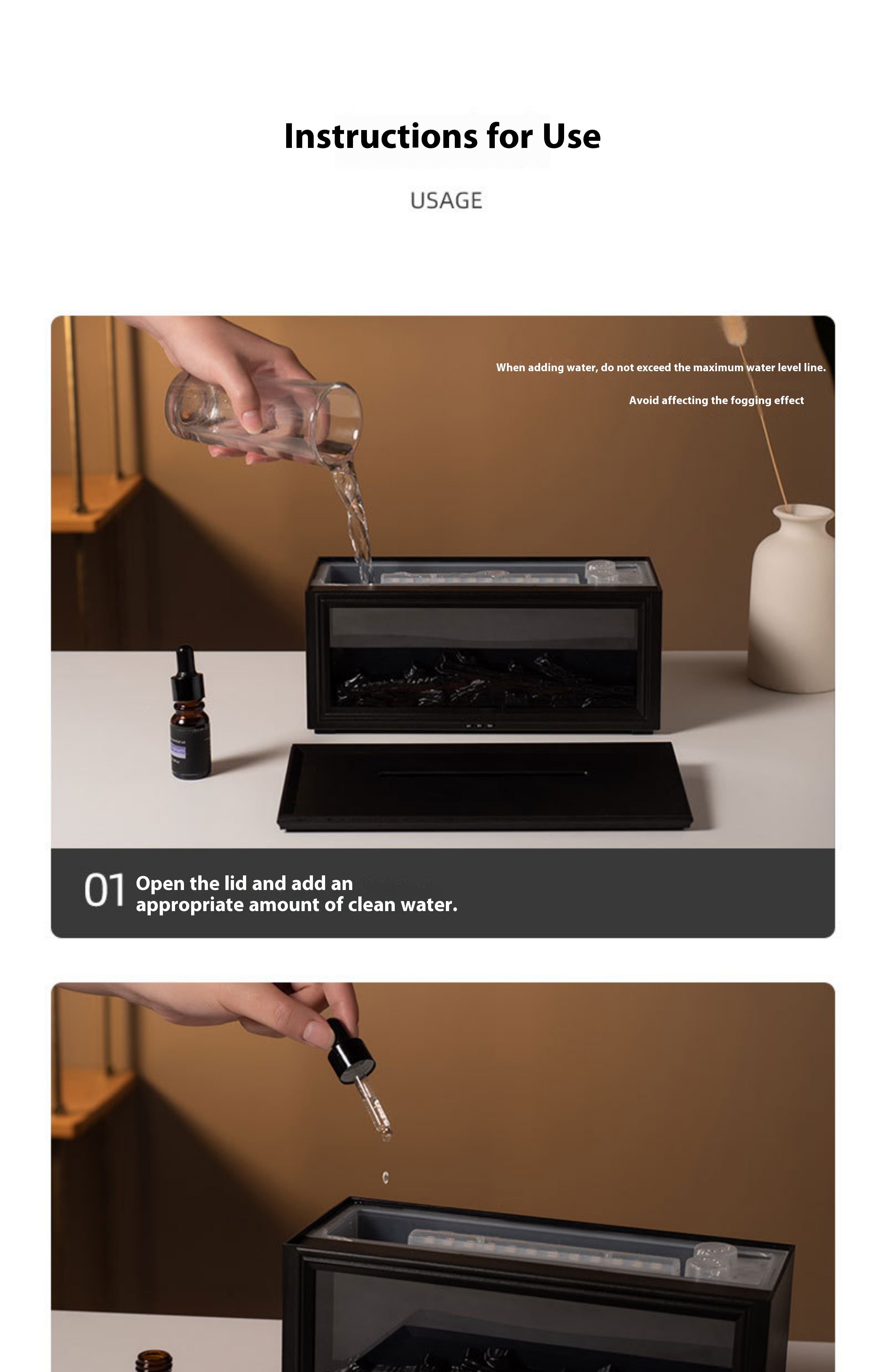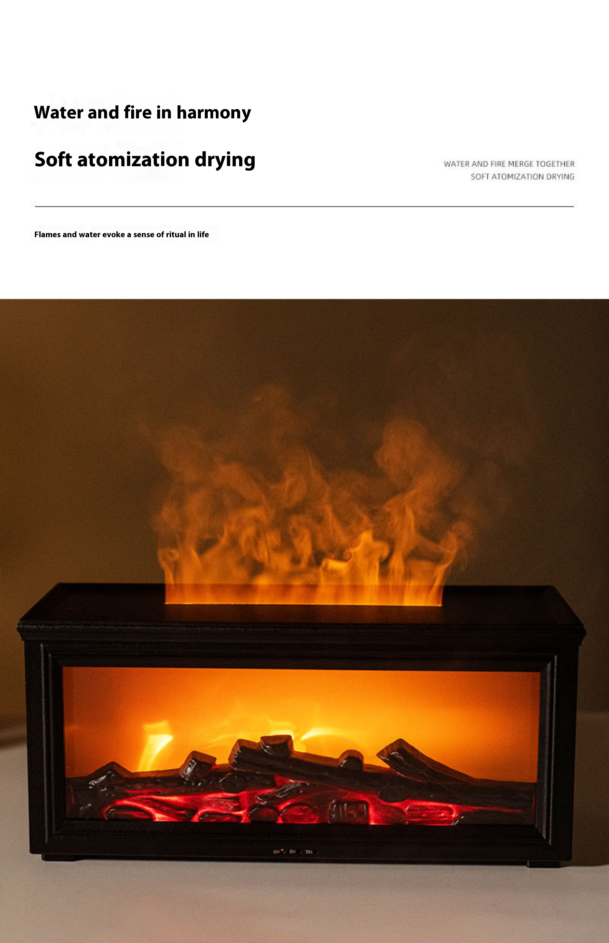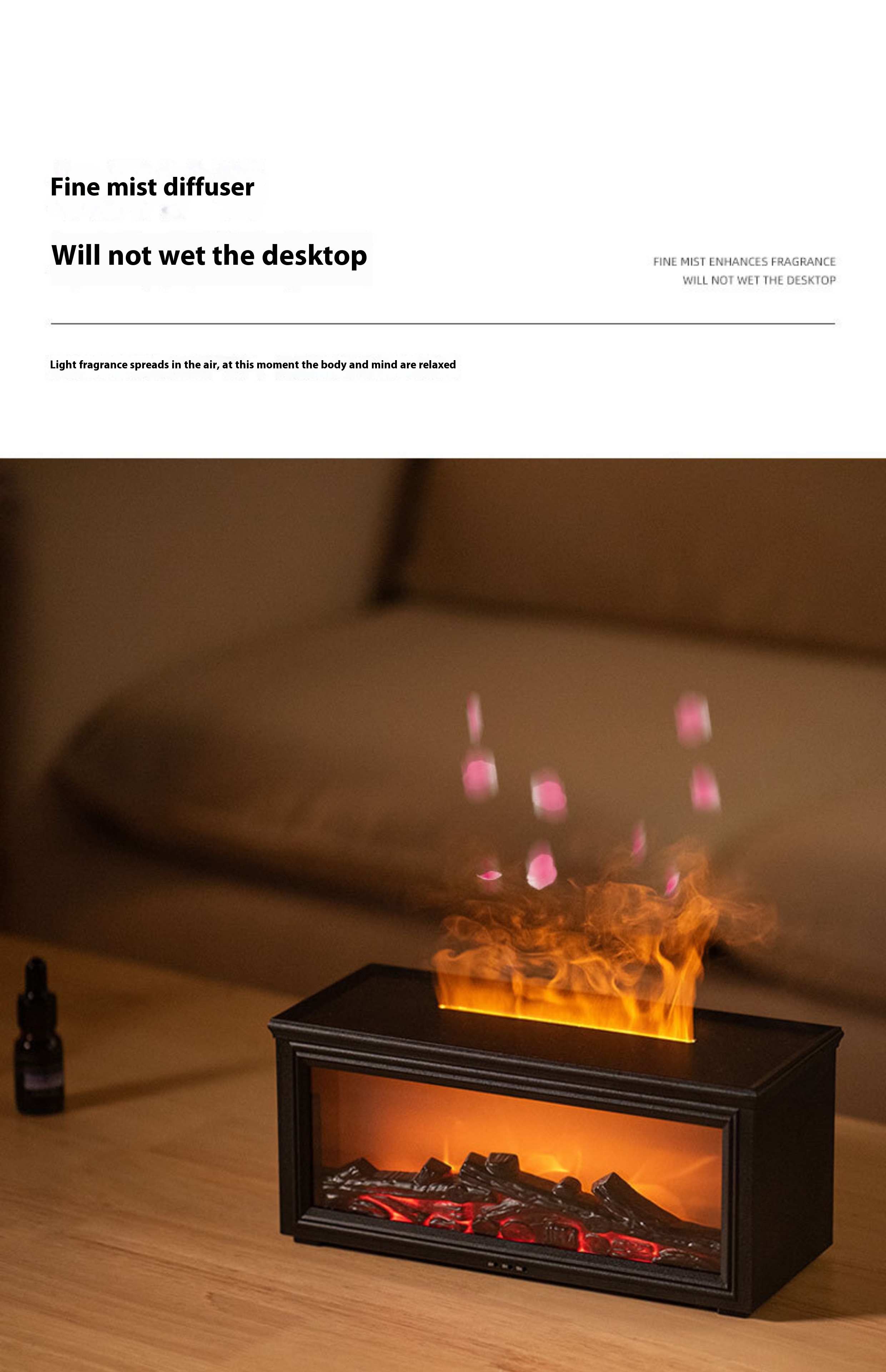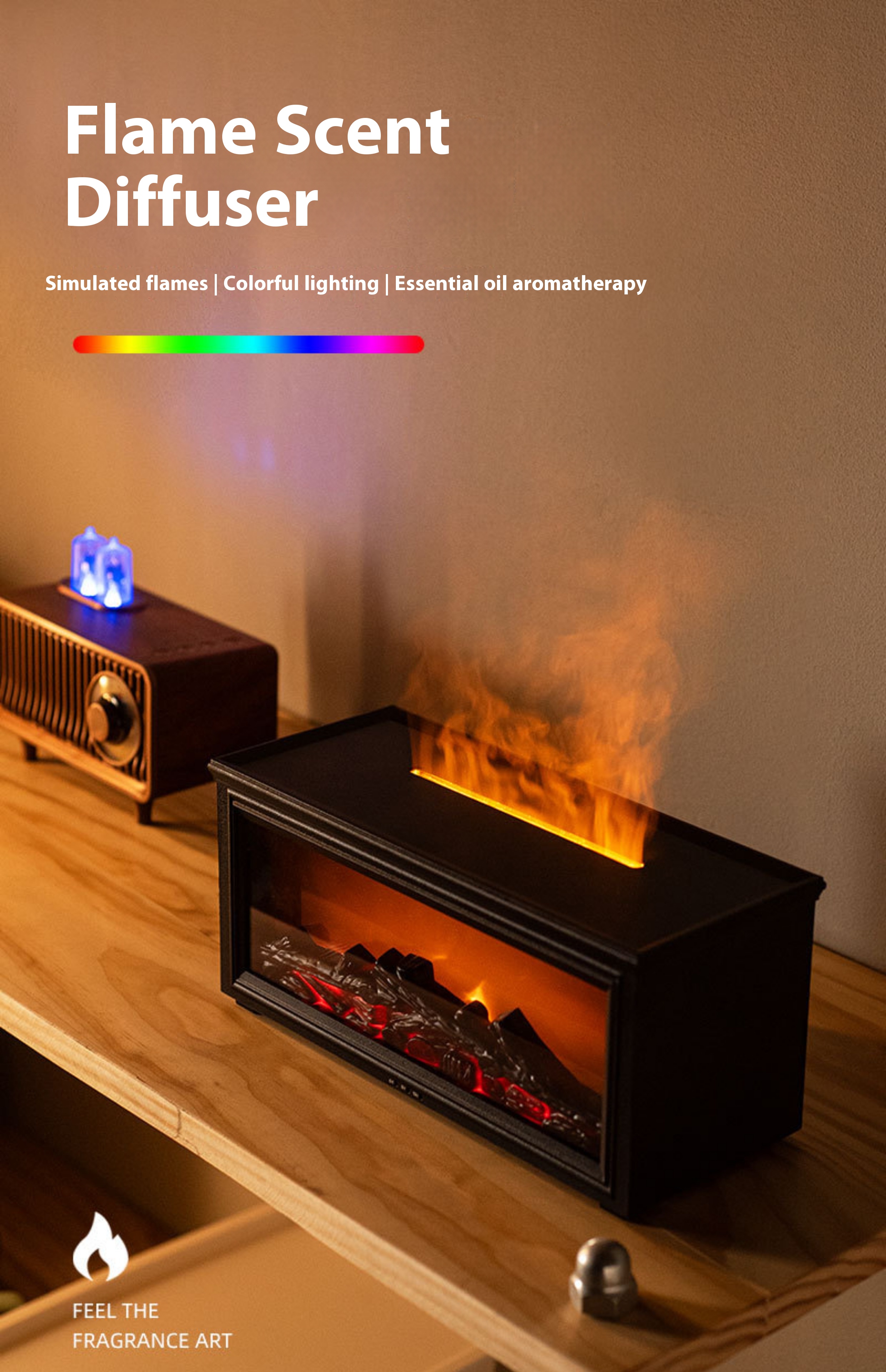 Fireplace style, silent, simulated flame, atmospheric aroma diffuser humidifier gift