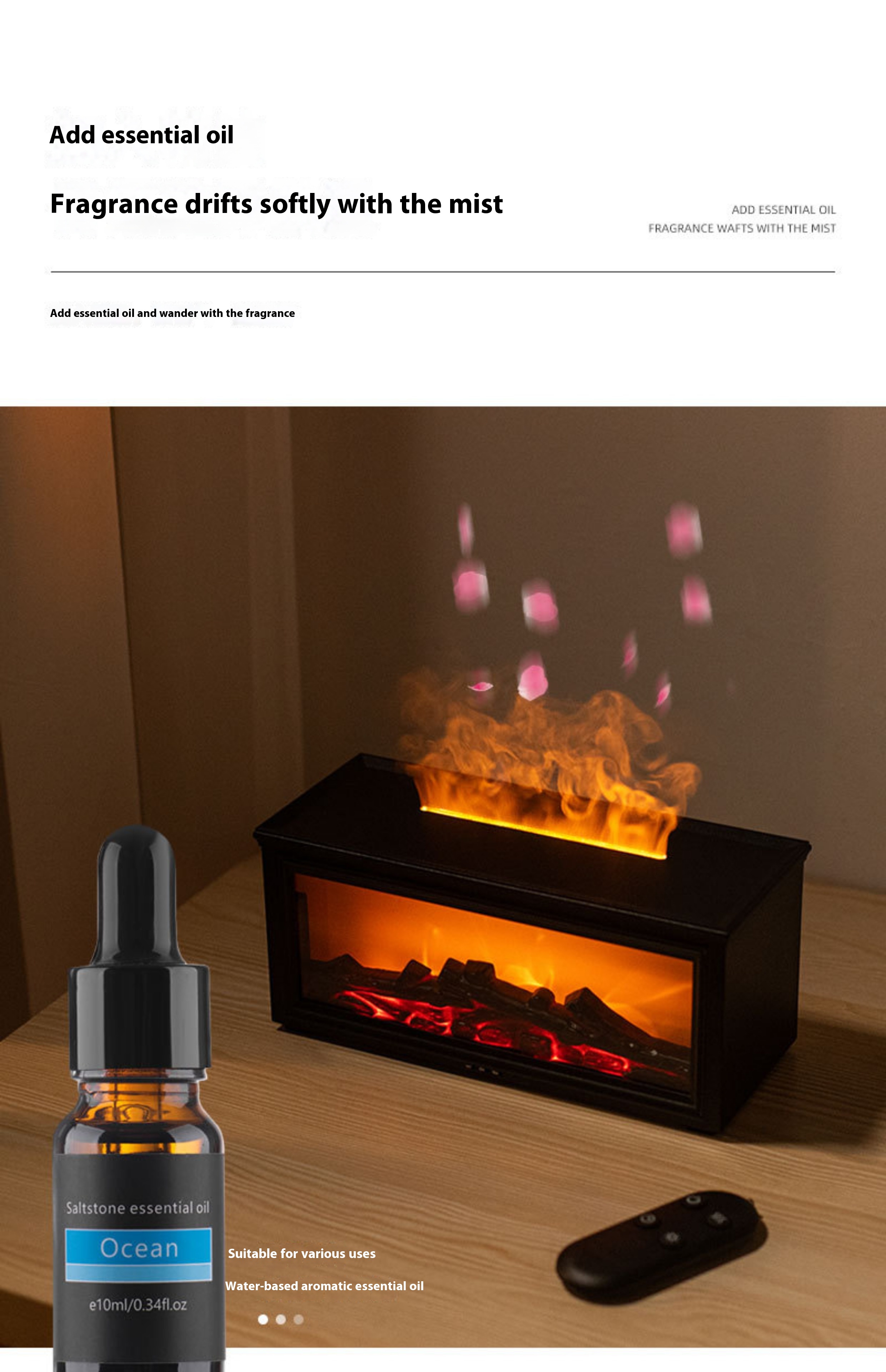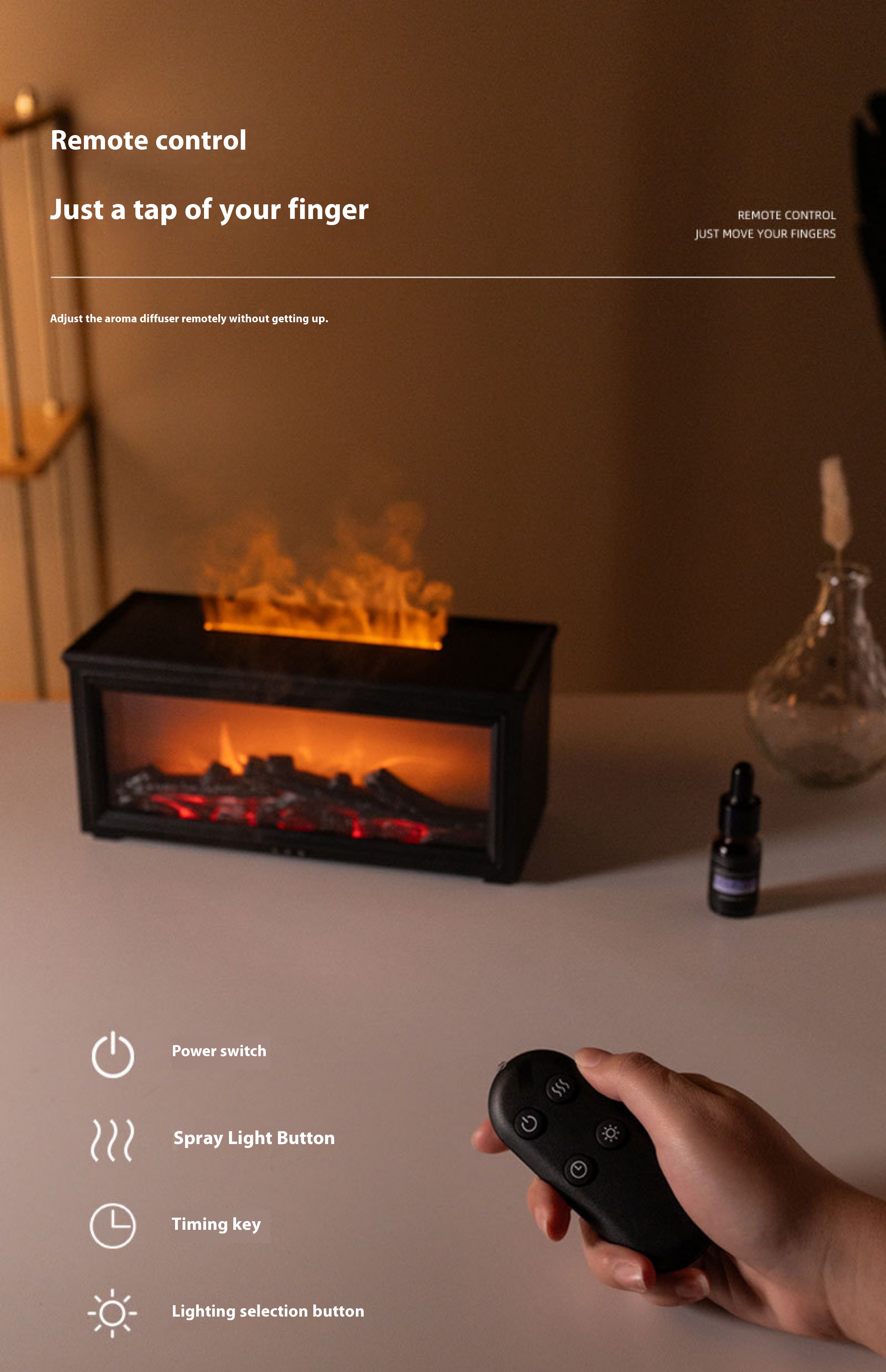 Simulated firewood+remote control+three level timing+6 bottles of essential oil