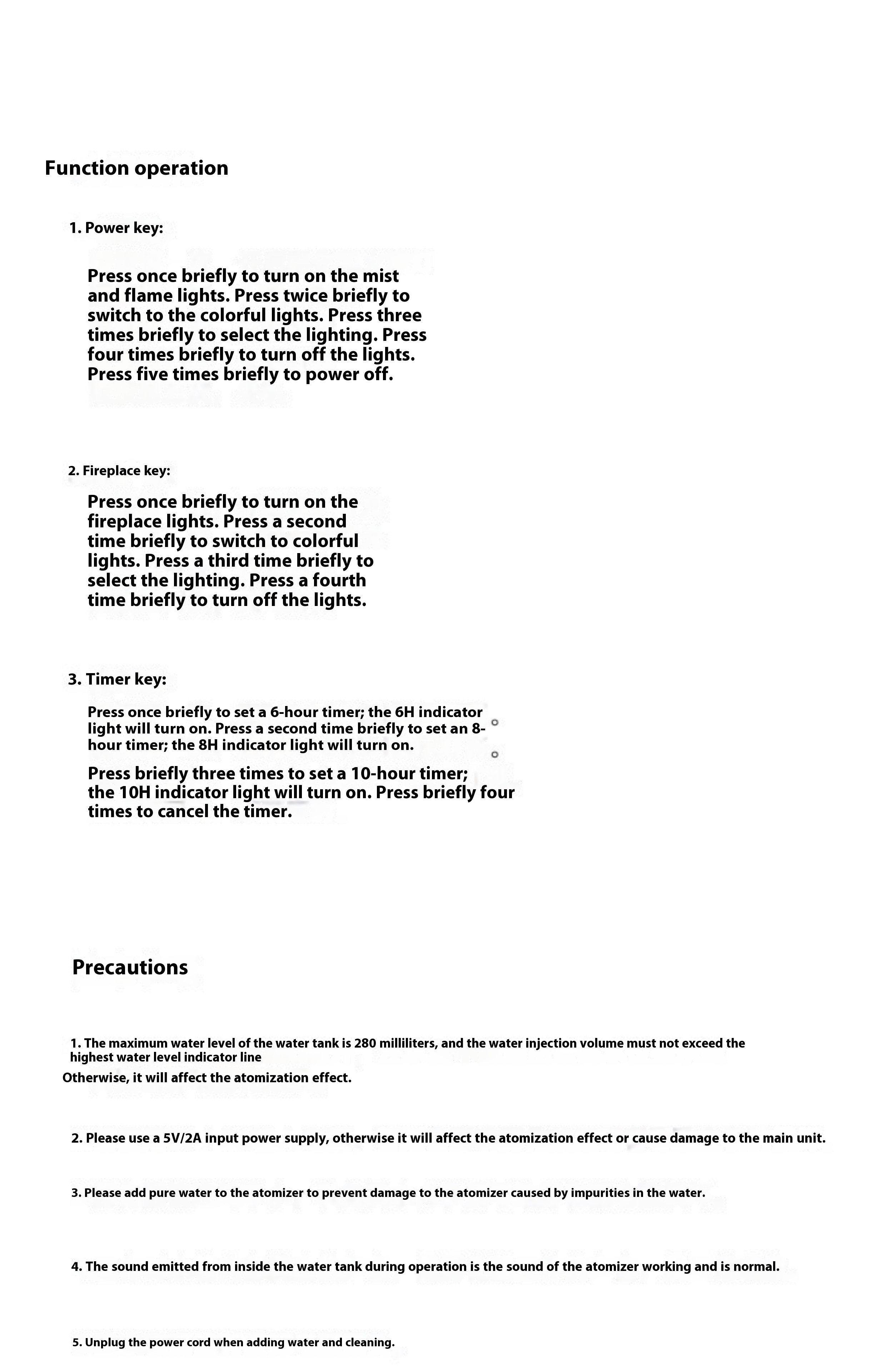 Water free power-off+remote control+three speed timing+colorful flame