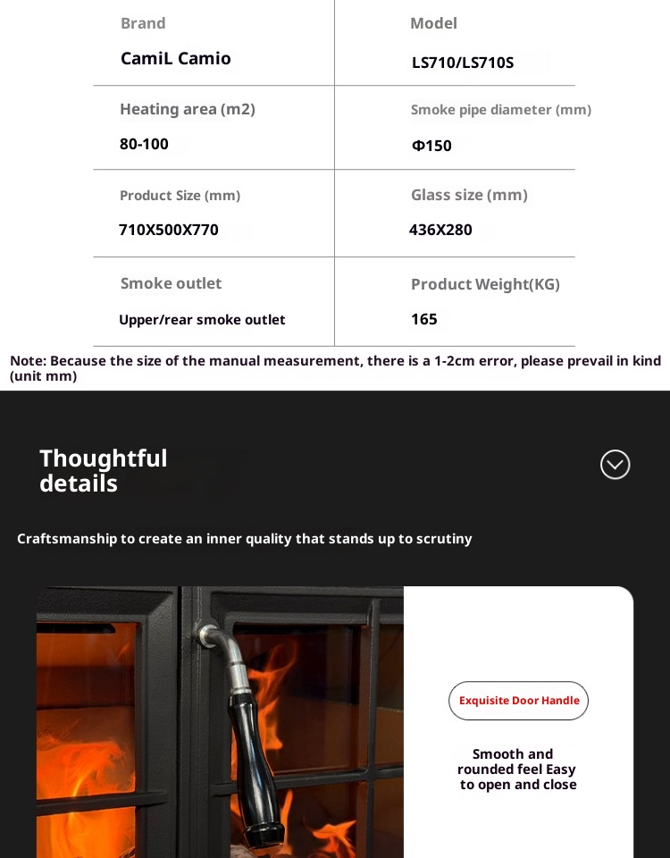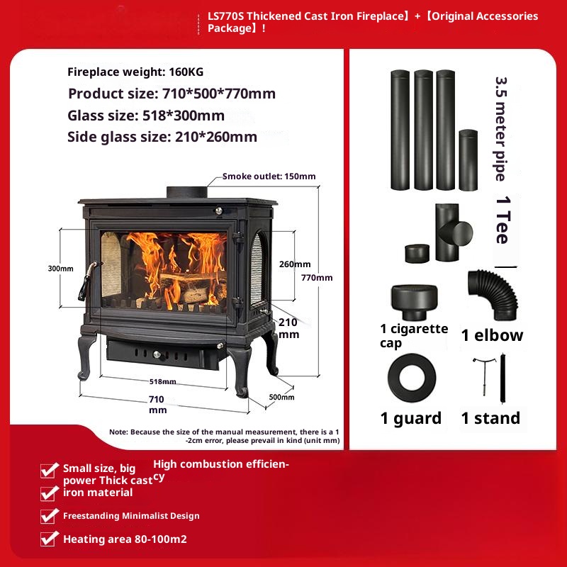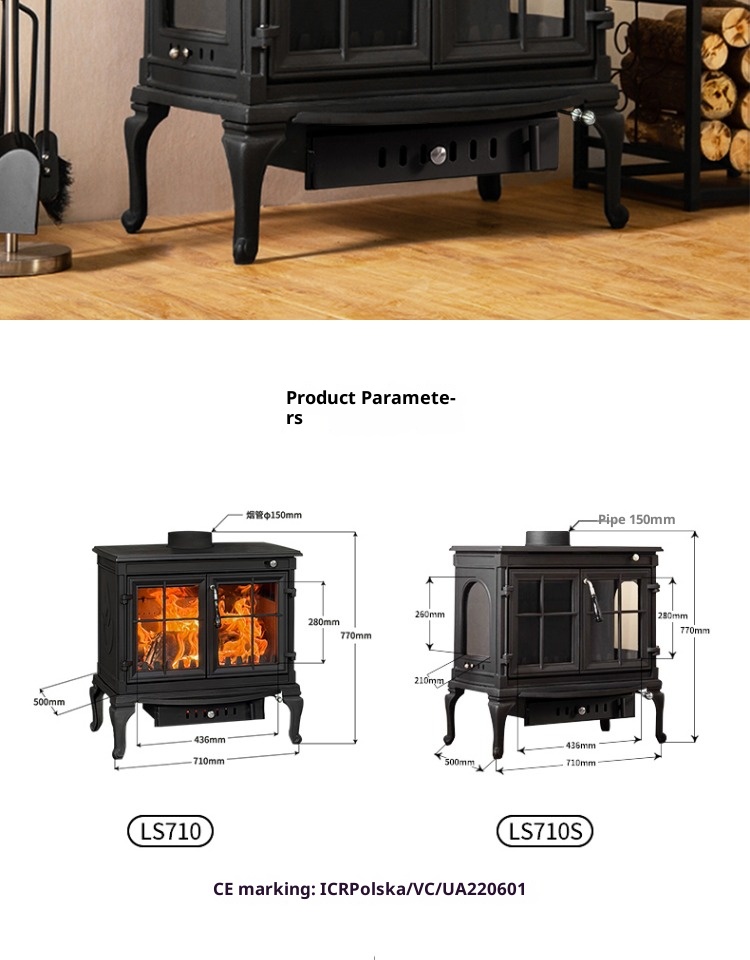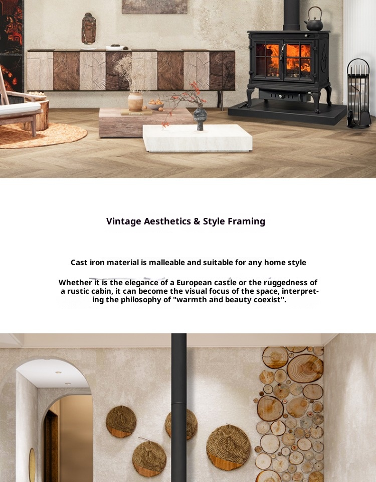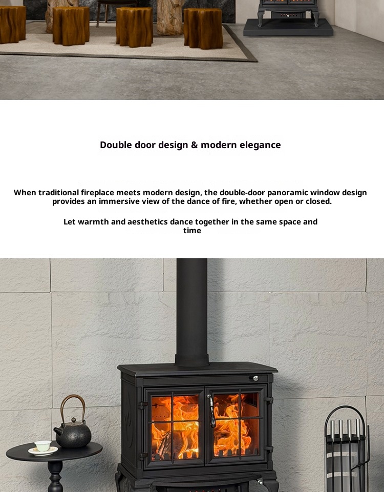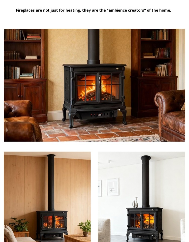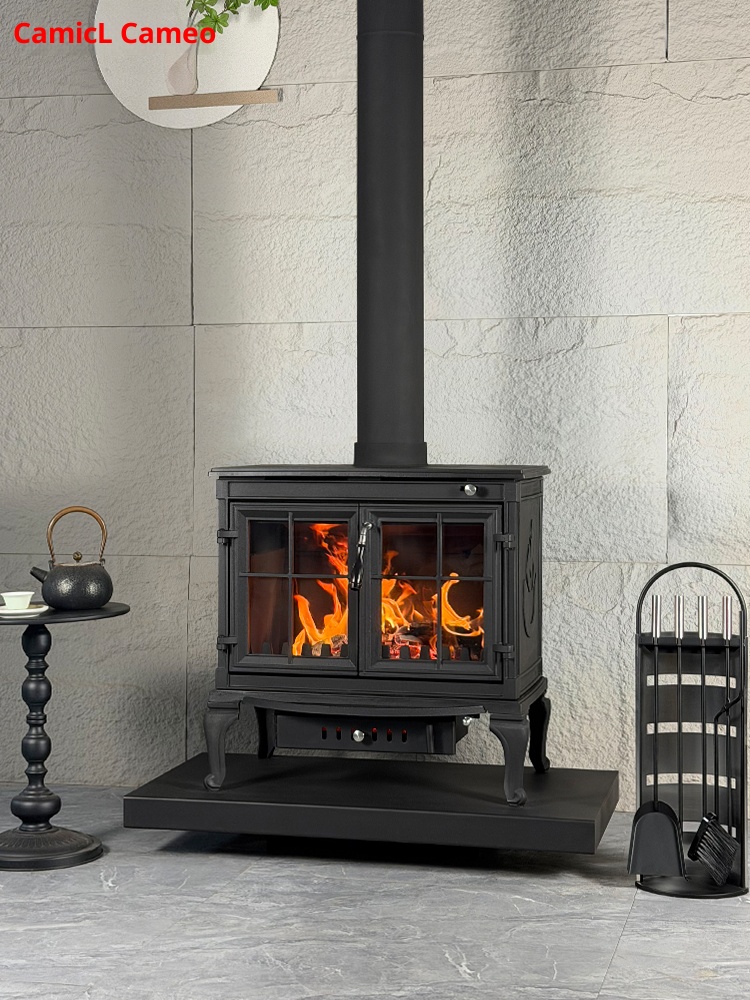 Firewood independent cast iron fireplace
