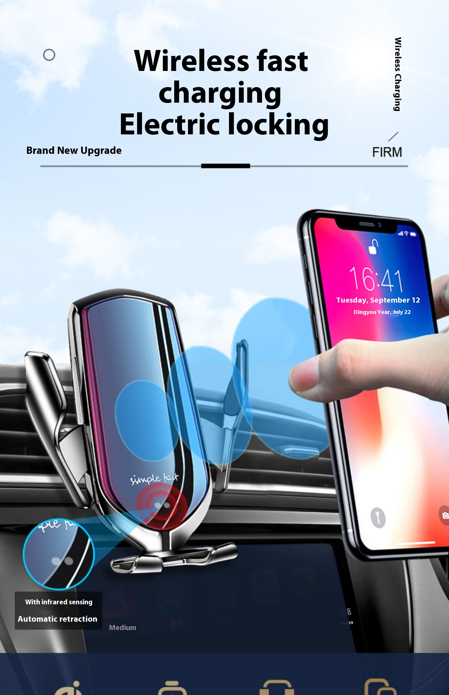 Intelligent sensing, wireless charging, 2025 new car phone holder, fast charging