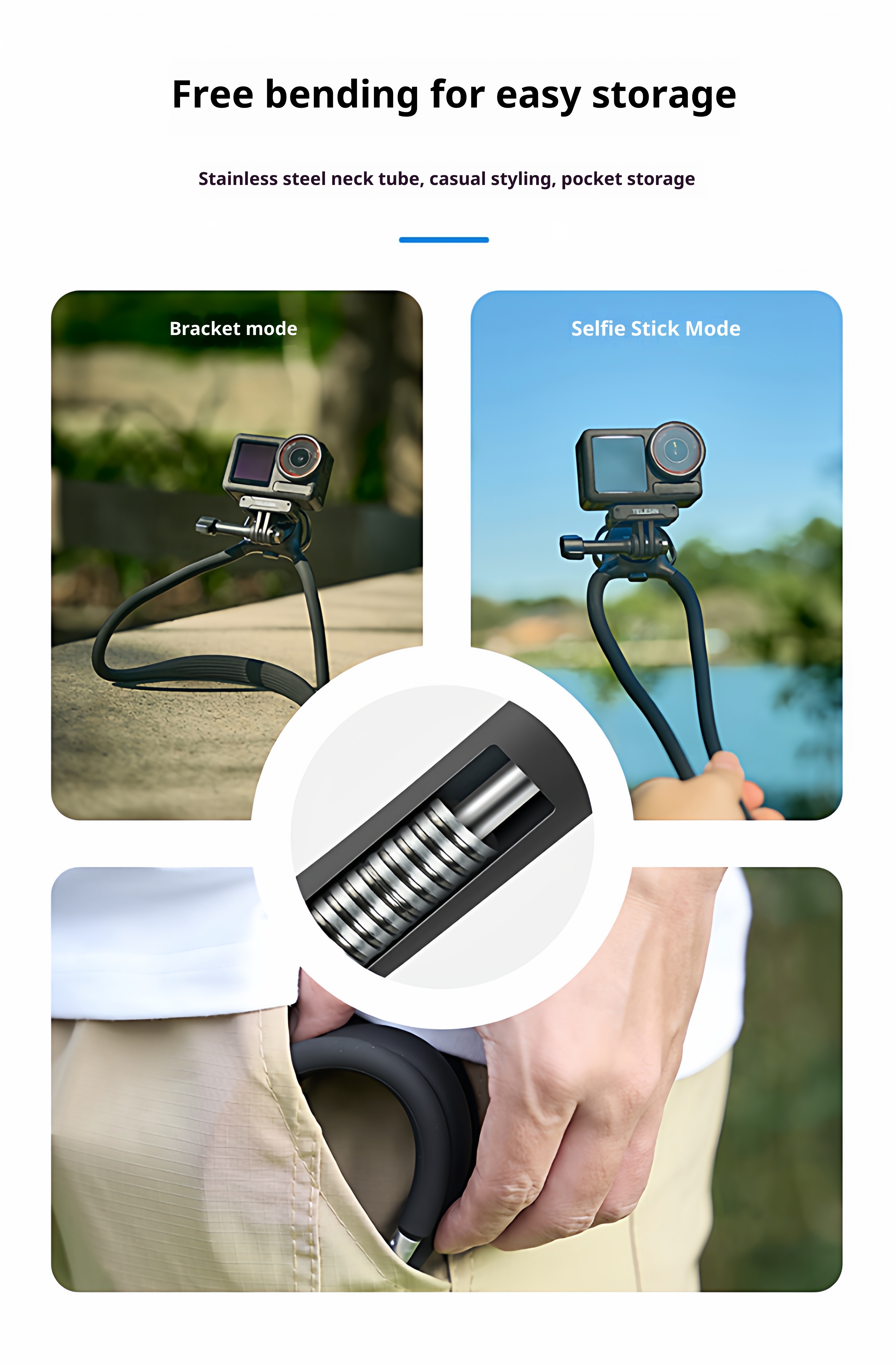 Mobile phone, sports camera, neck hanging shooting stand