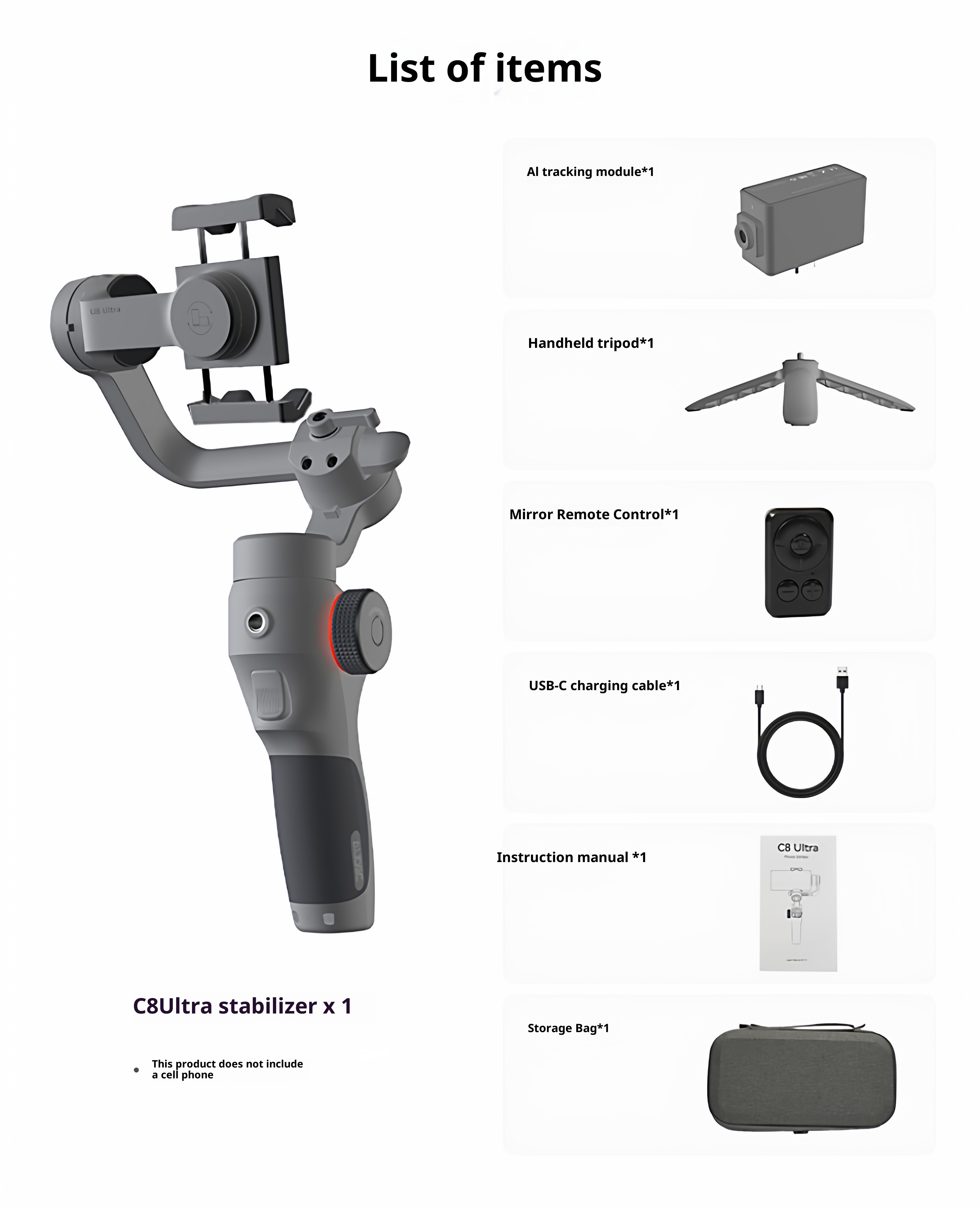 Mobile stabilizer, handheld 360 ° follow-up, rotating gimbal, AI follow-up gimbal