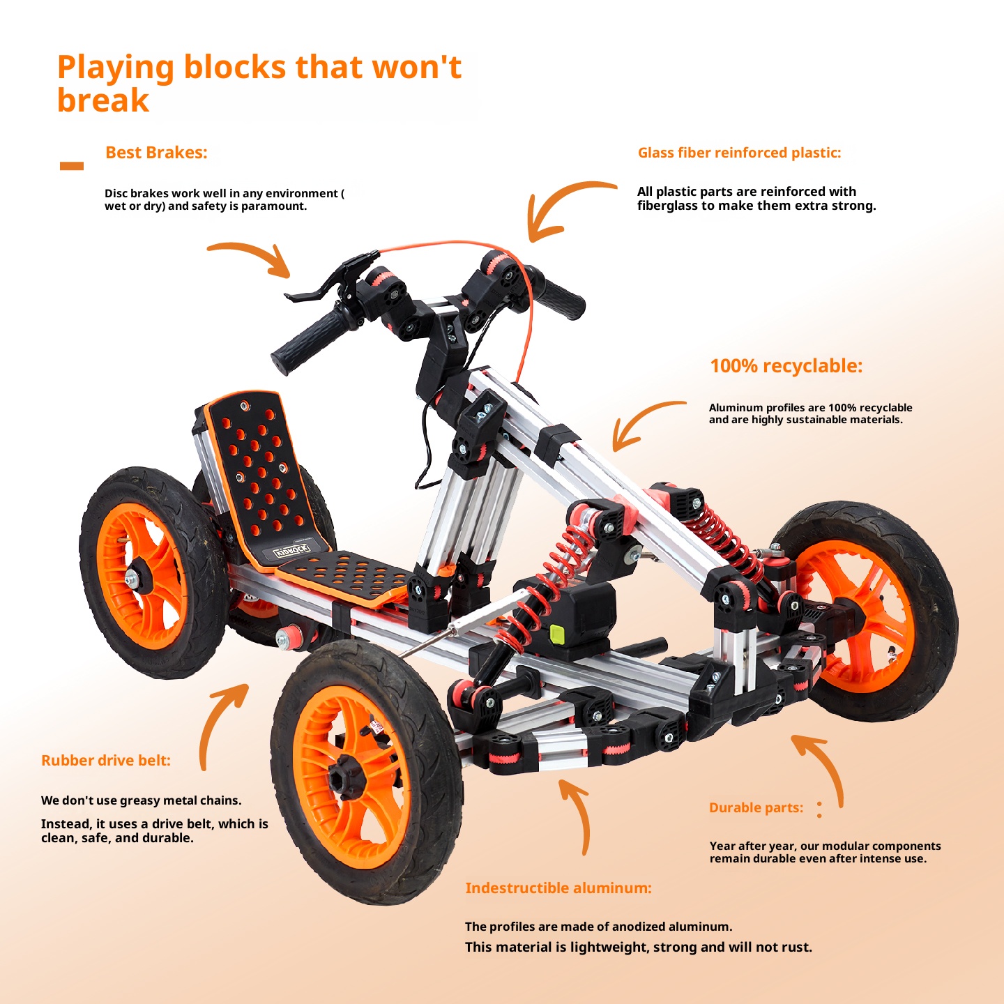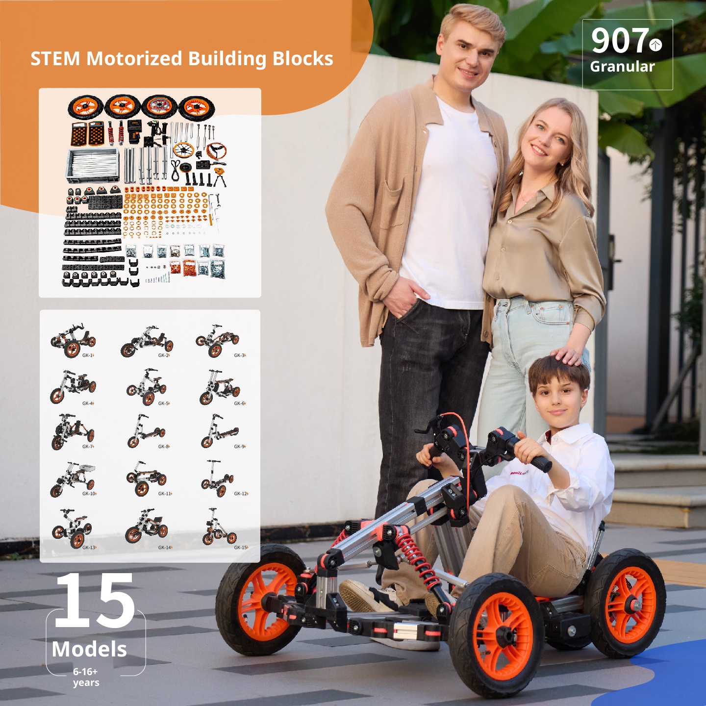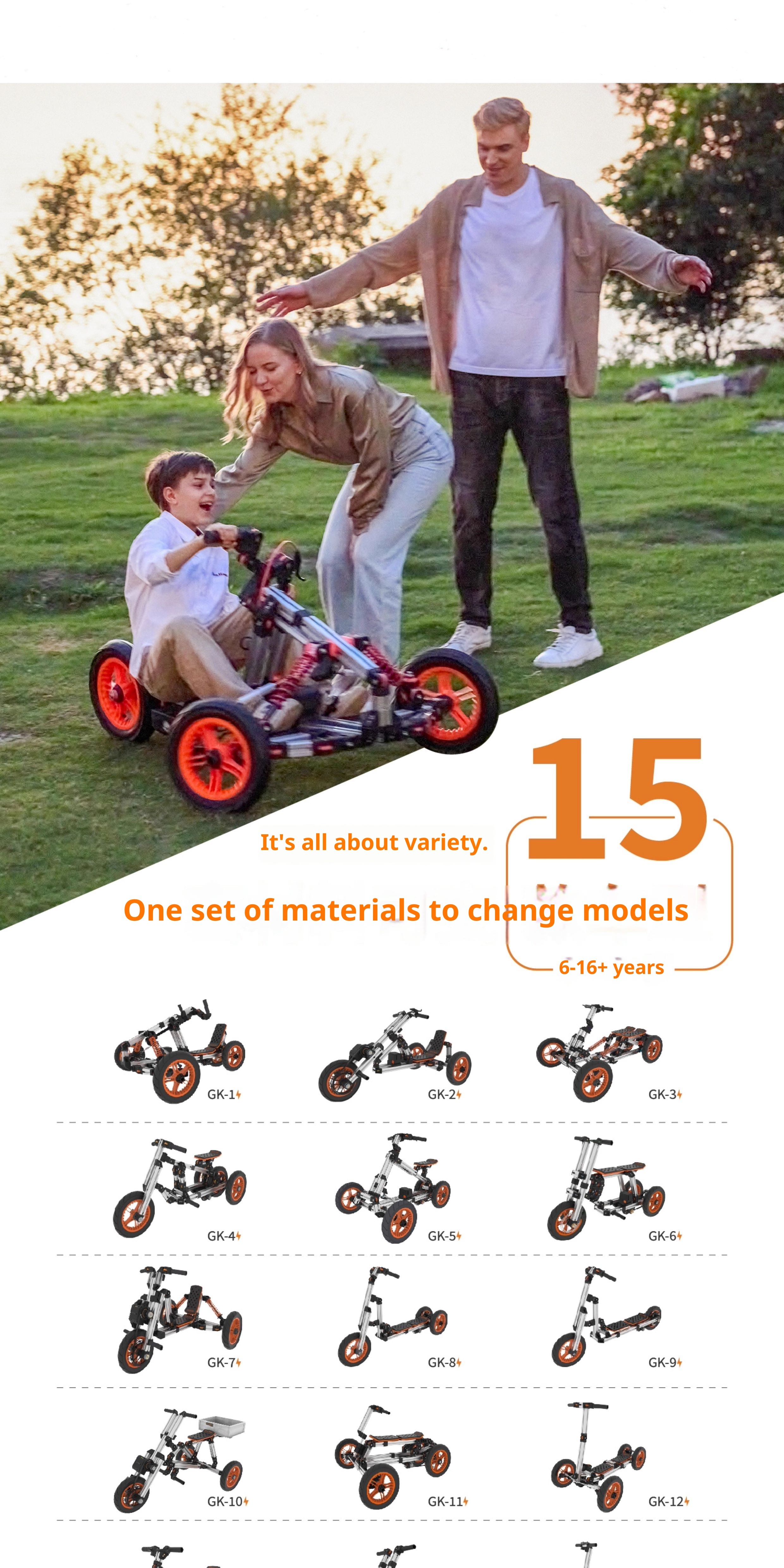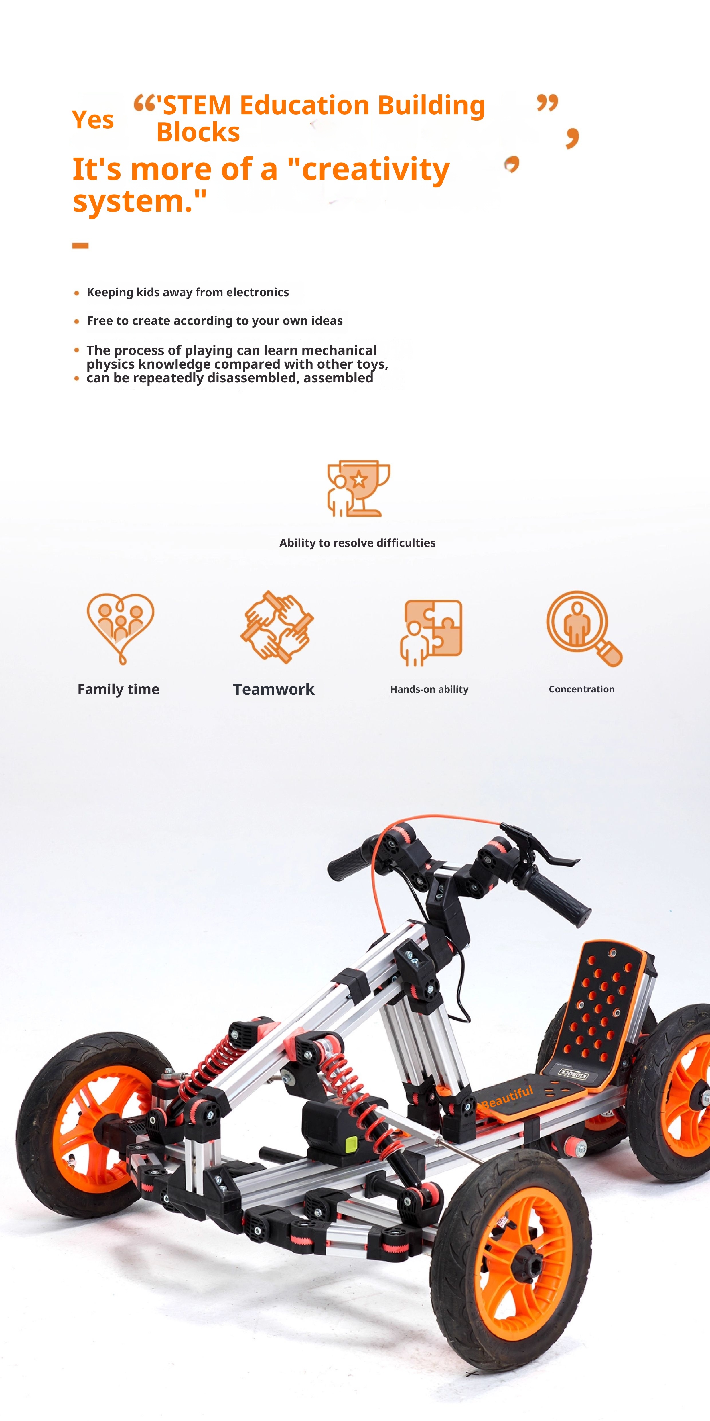 Multi module, self powered, 15 forms of assembled children's car