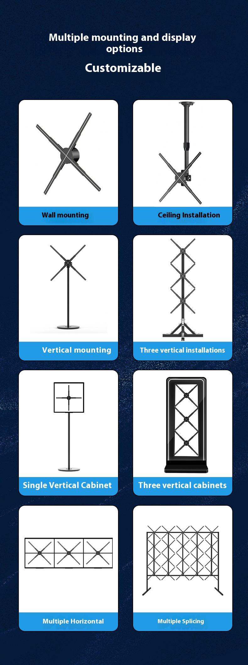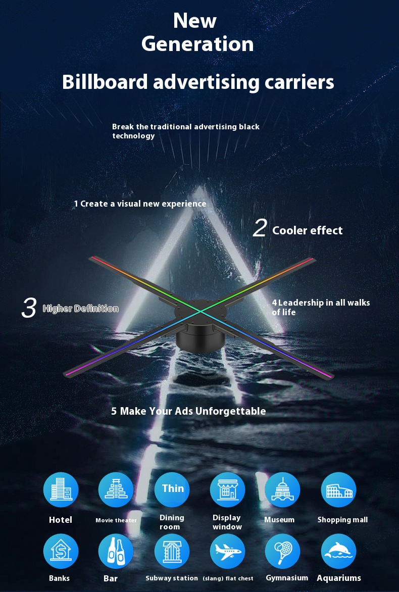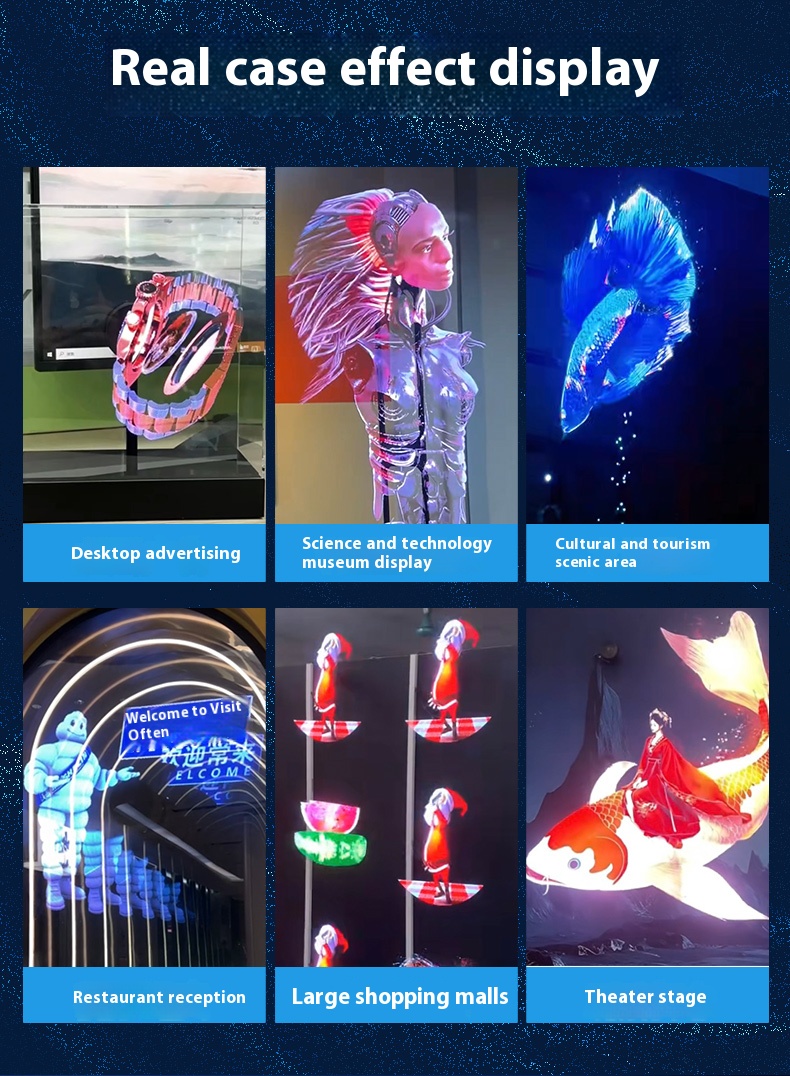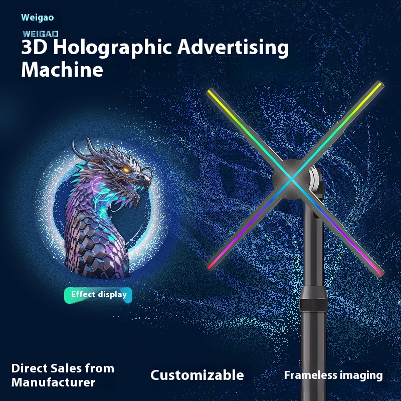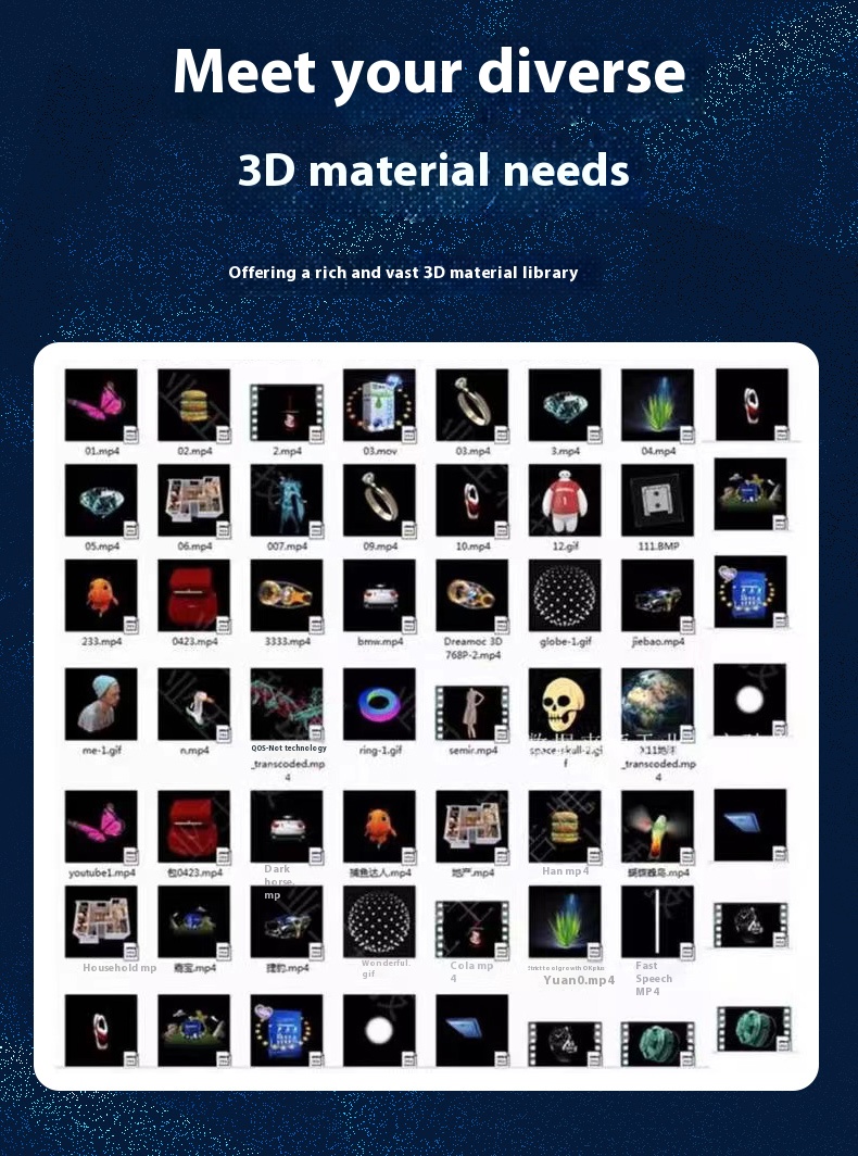 Naked eye 3D holographic projector aerial imaging rotating LED display screen
