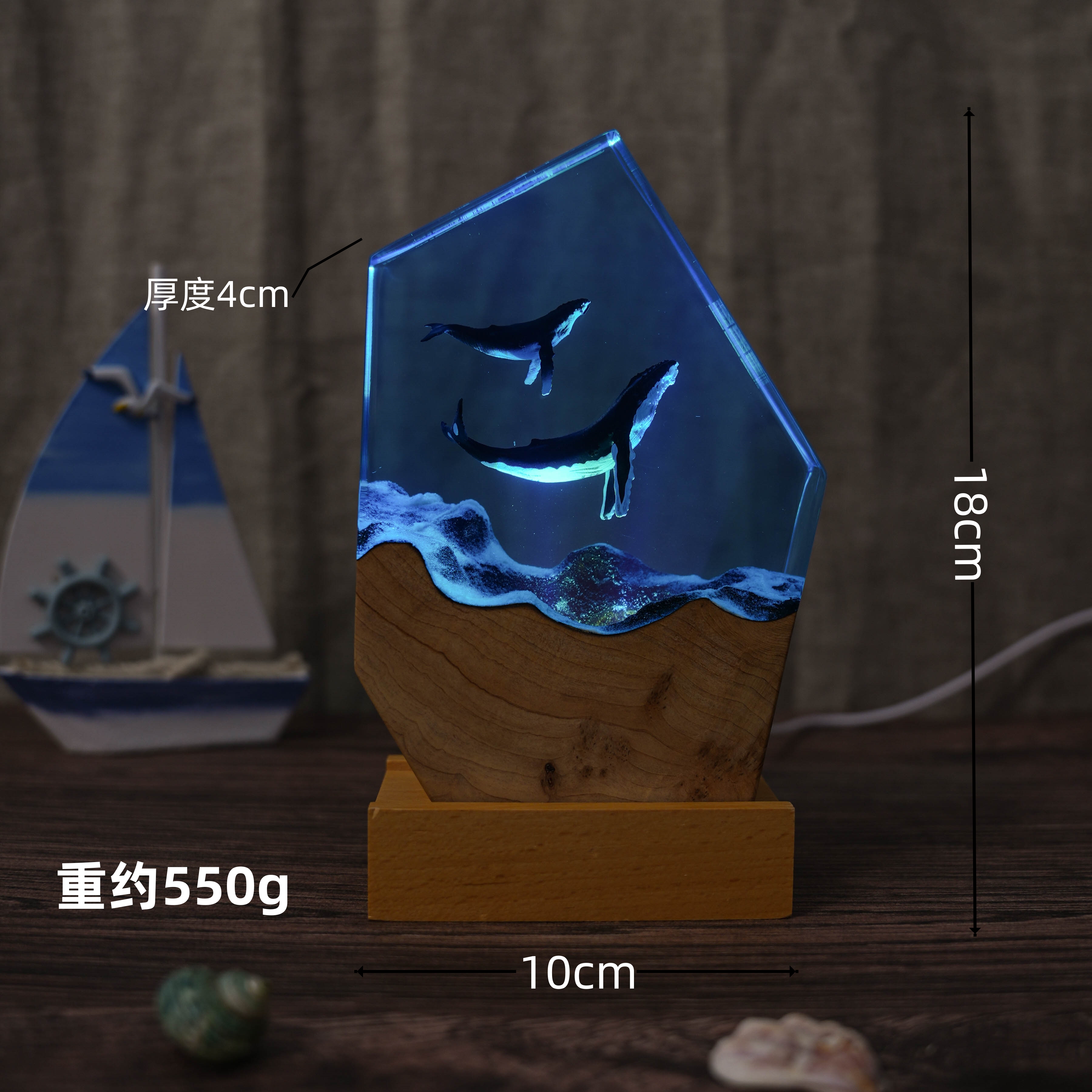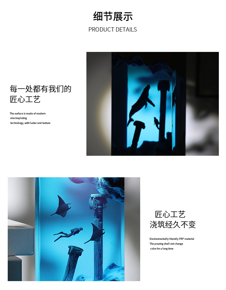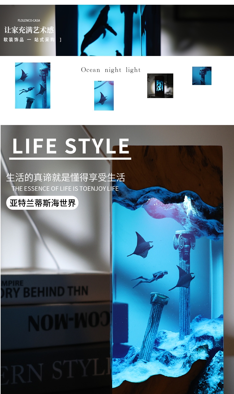 Simulated ocean 3D resin art ornament lamp