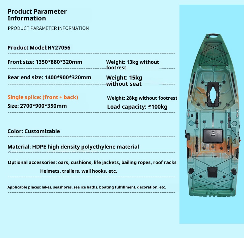 Splicing thickened kayaks, single and double seater loafers, fishing boats, assault boats