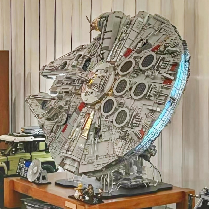 High brick version of the ultimate millennium falcon, remote control light+horizontal display box