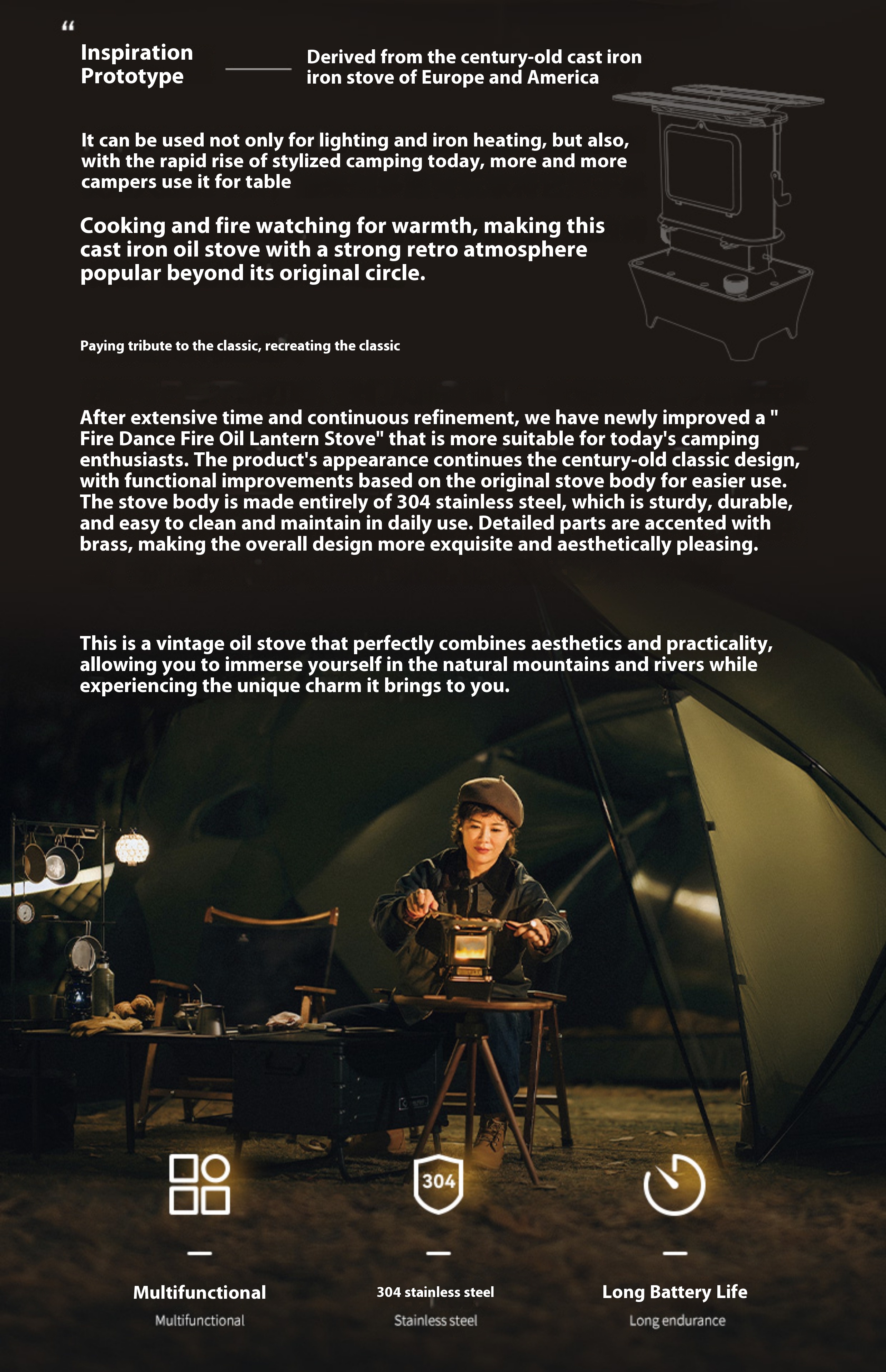 Thousand Wind Outdoor Kerosene Stove, Observation Stove Lamp, Retro Camping Atmosphere Lamp Stove Dual purpose