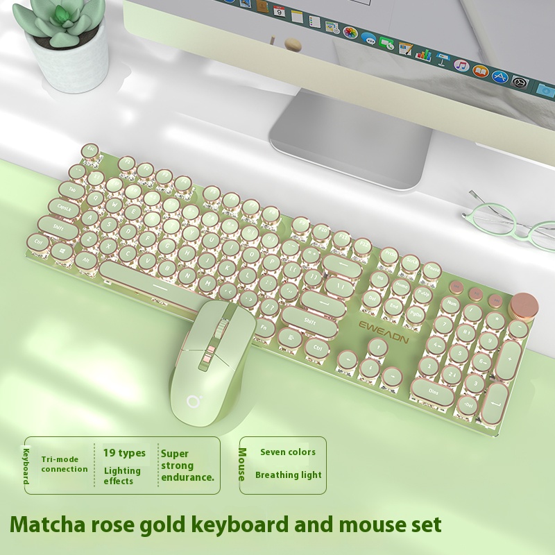 Wireless Bluetooth Mouse Set Punk Girls Computer Gaming Esports Specialized Mechanical Keyboard