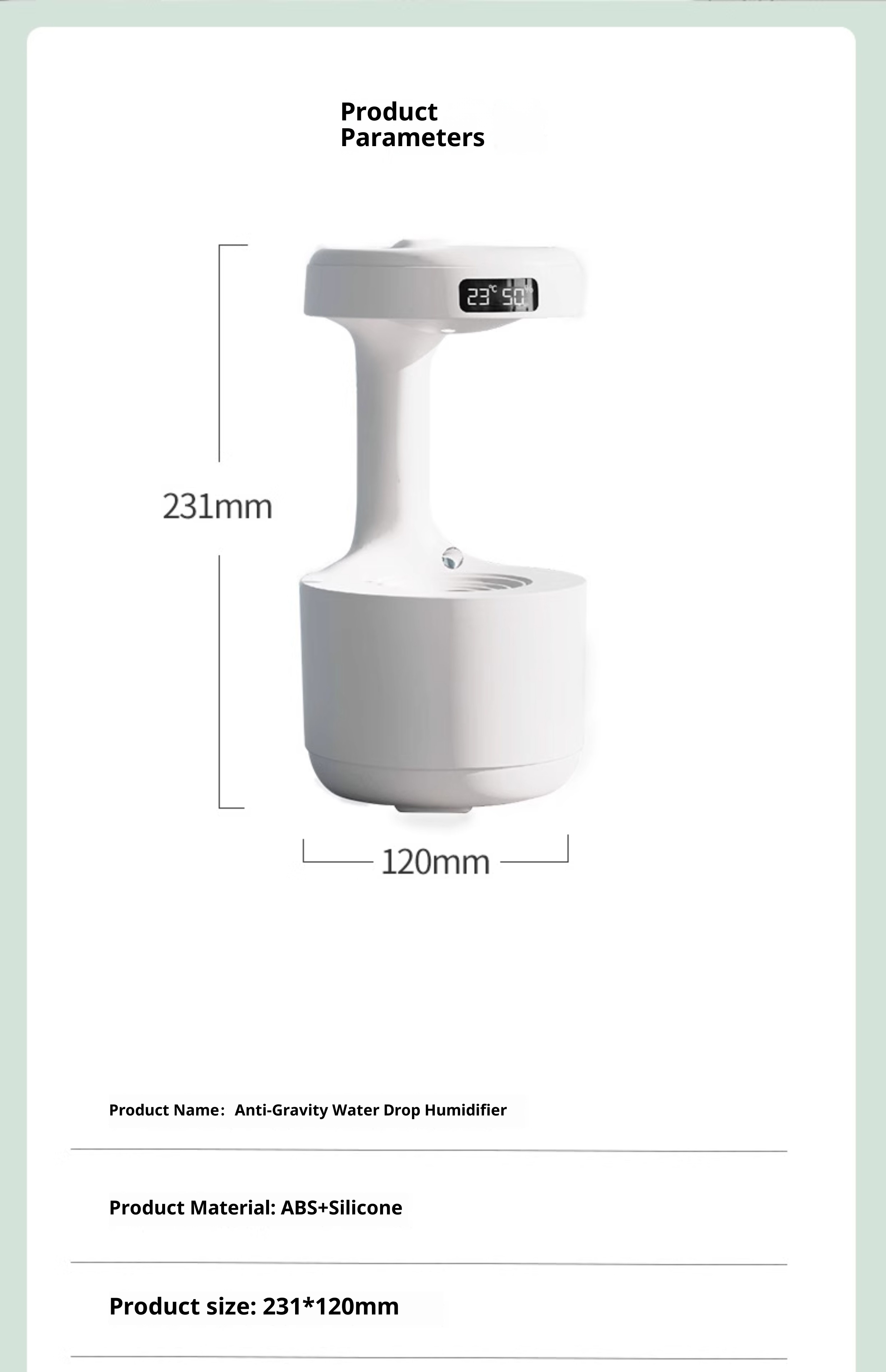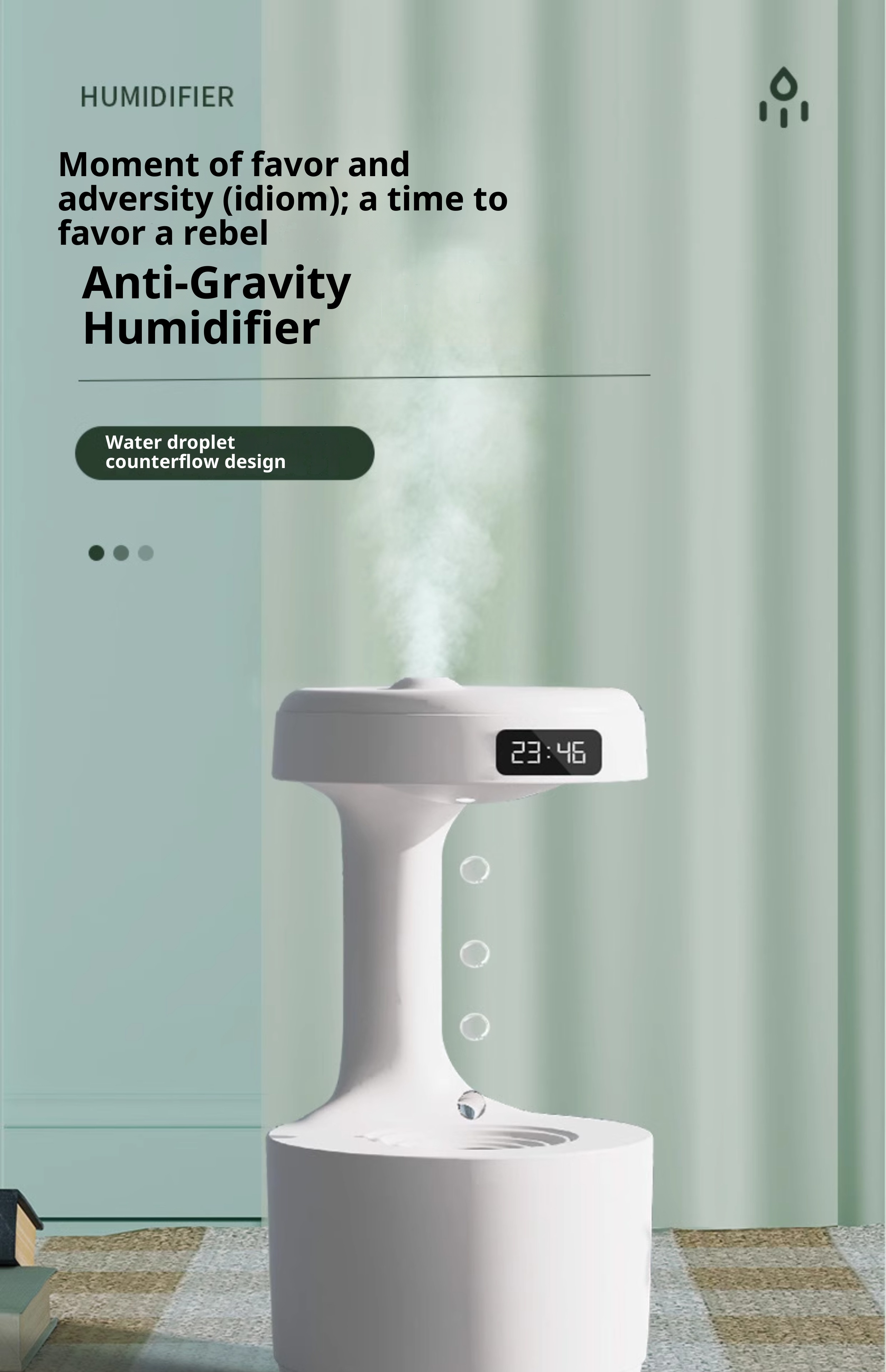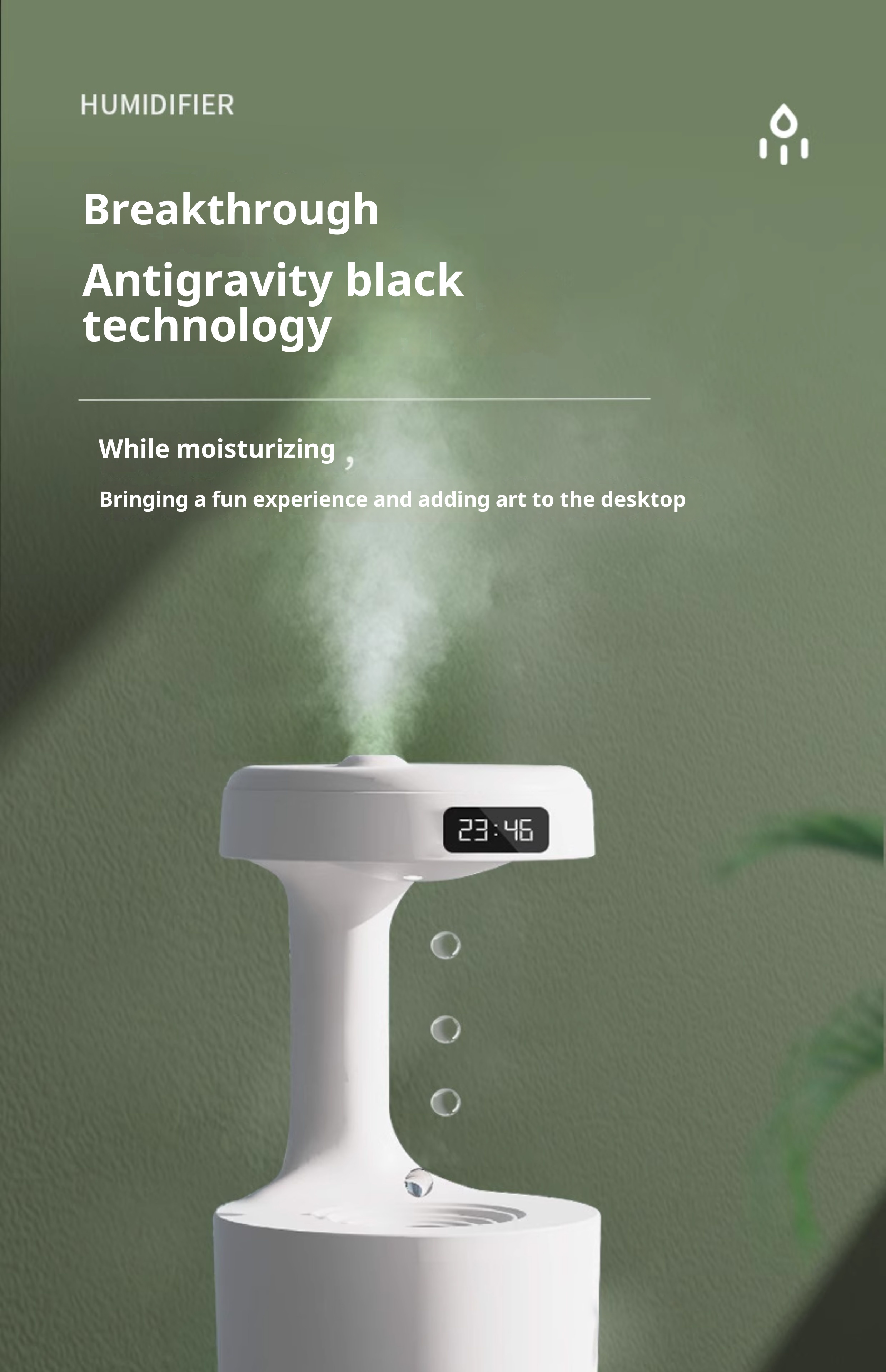 Digital clock anti gravity humidifier, water droplet backflow silent aromatherapy smoke machine