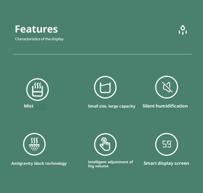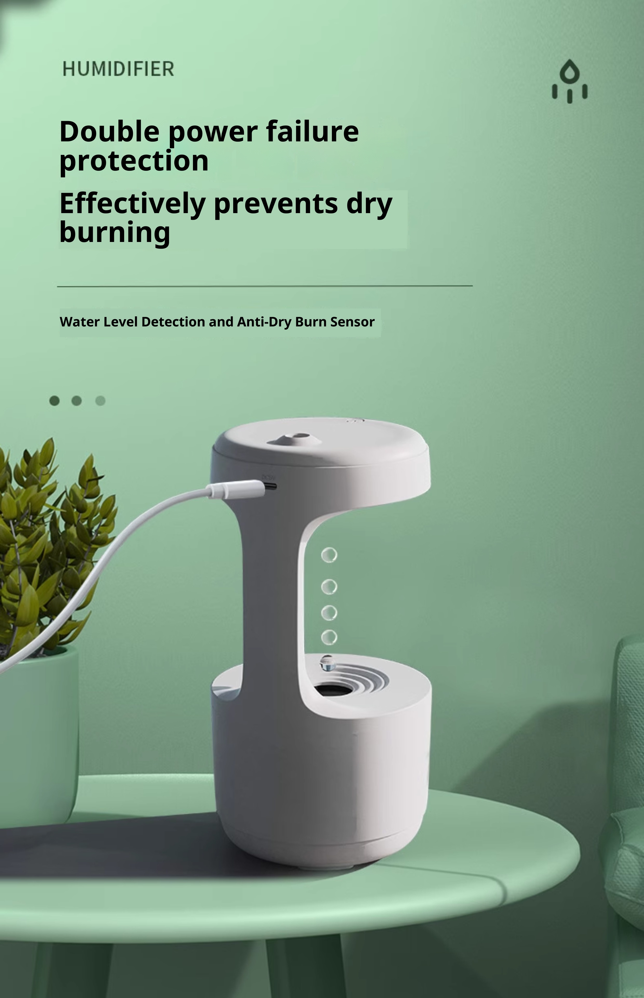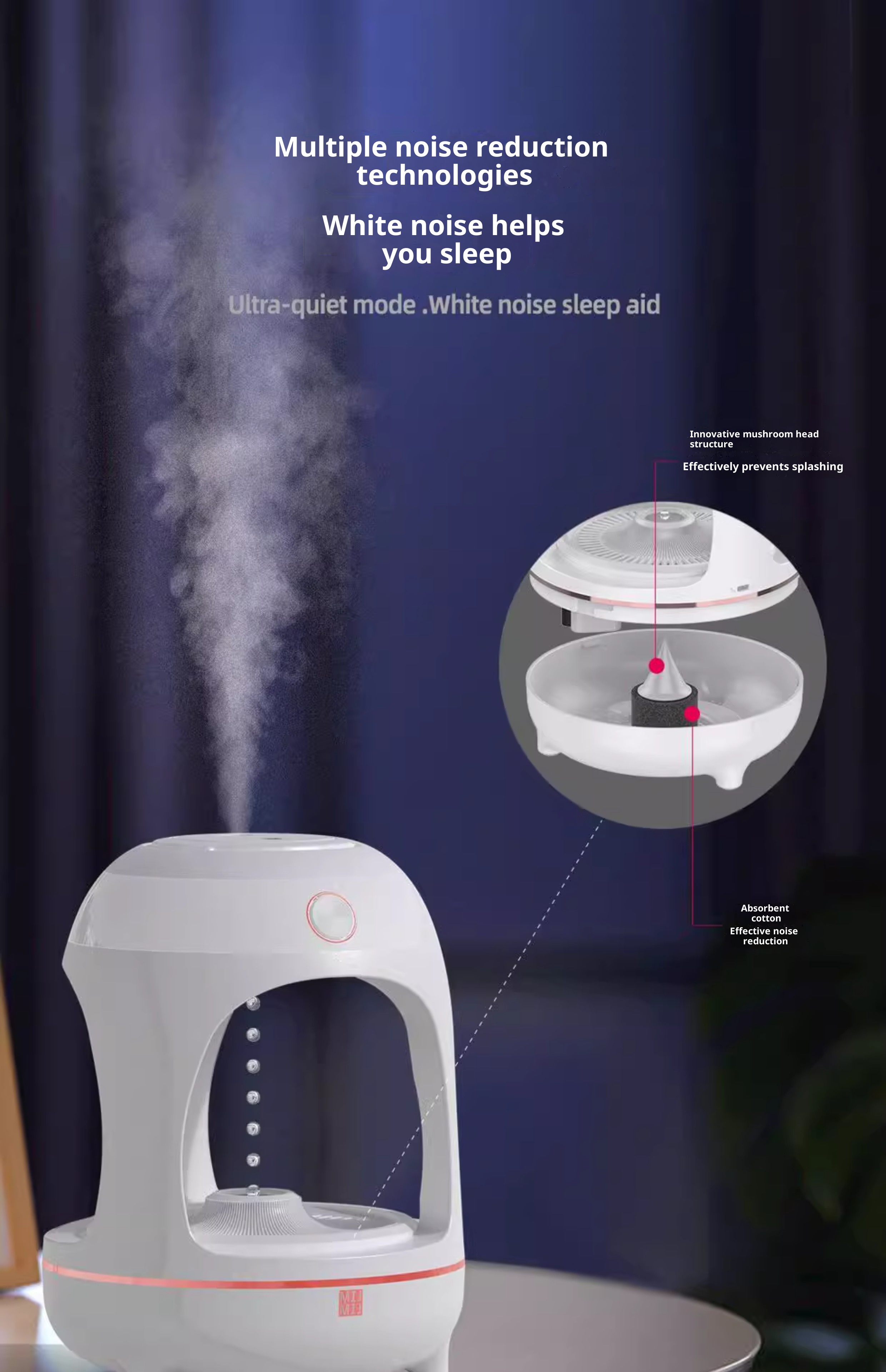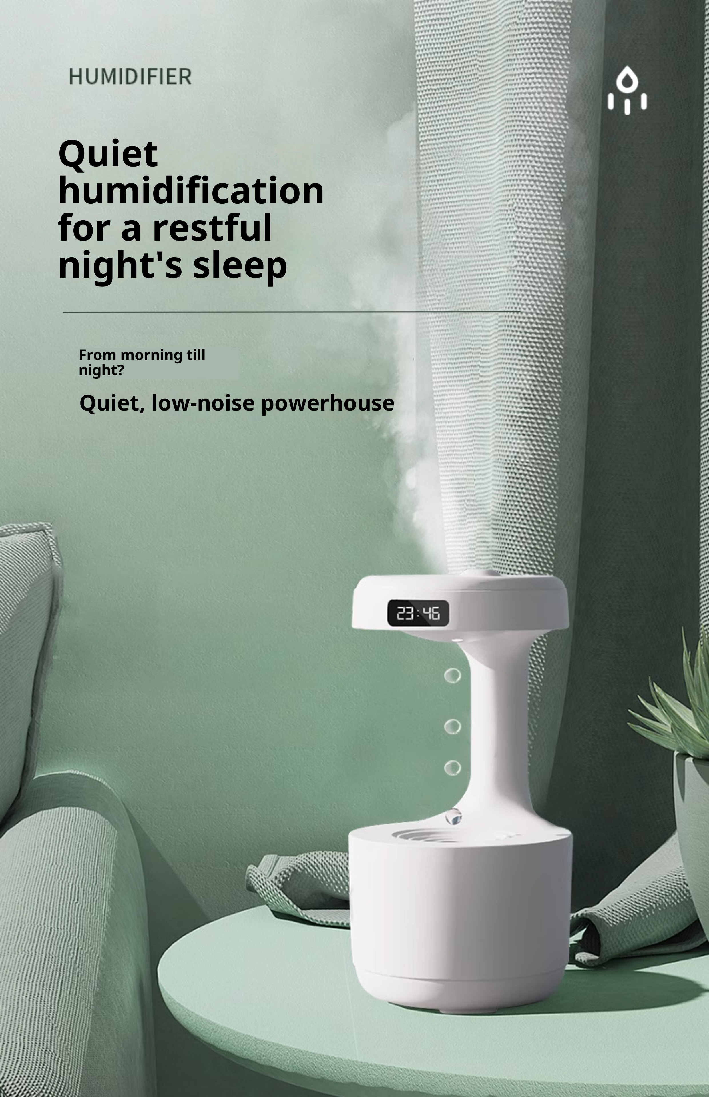 Digital clock anti gravity humidifier, water droplet backflow silent aromatherapy smoke machine