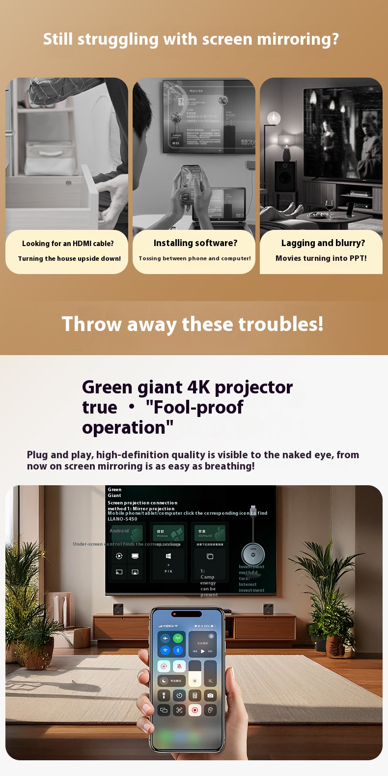 4K Wireless Projector 2025 New Phone Computer TV Same Screen Artifact HDMI Transmission Projector