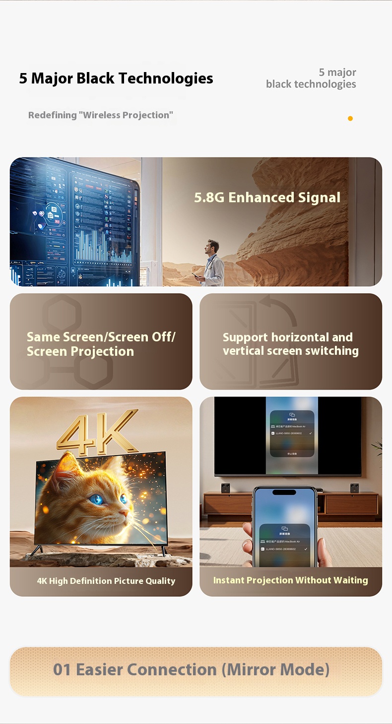 2Mirror off screen, 4K image quality, direct connection without scanning code upon startup, supports off screen, same screen, and screen mirroring